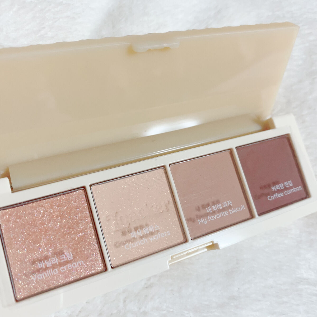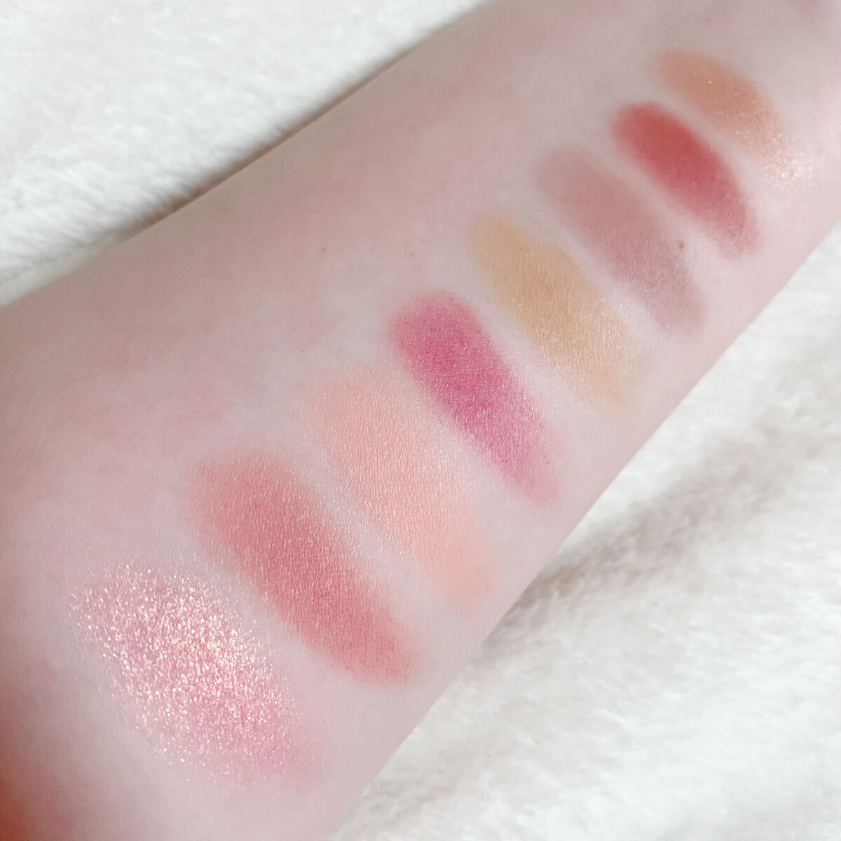 イエベさんでも ブルベさんでも 絶対似合う 透明感たっぷりピンクのパレット 青みがかっていたり コーラルが入っていない マットメインのパレット いちごミルクの可愛いピンクと 締め色に使えるブラウン キラキラのグリッターが 本当に可愛いアイメイクにぴったり 発色や優しいので アイシャドウベースは 必須アイテム·͜· ♡