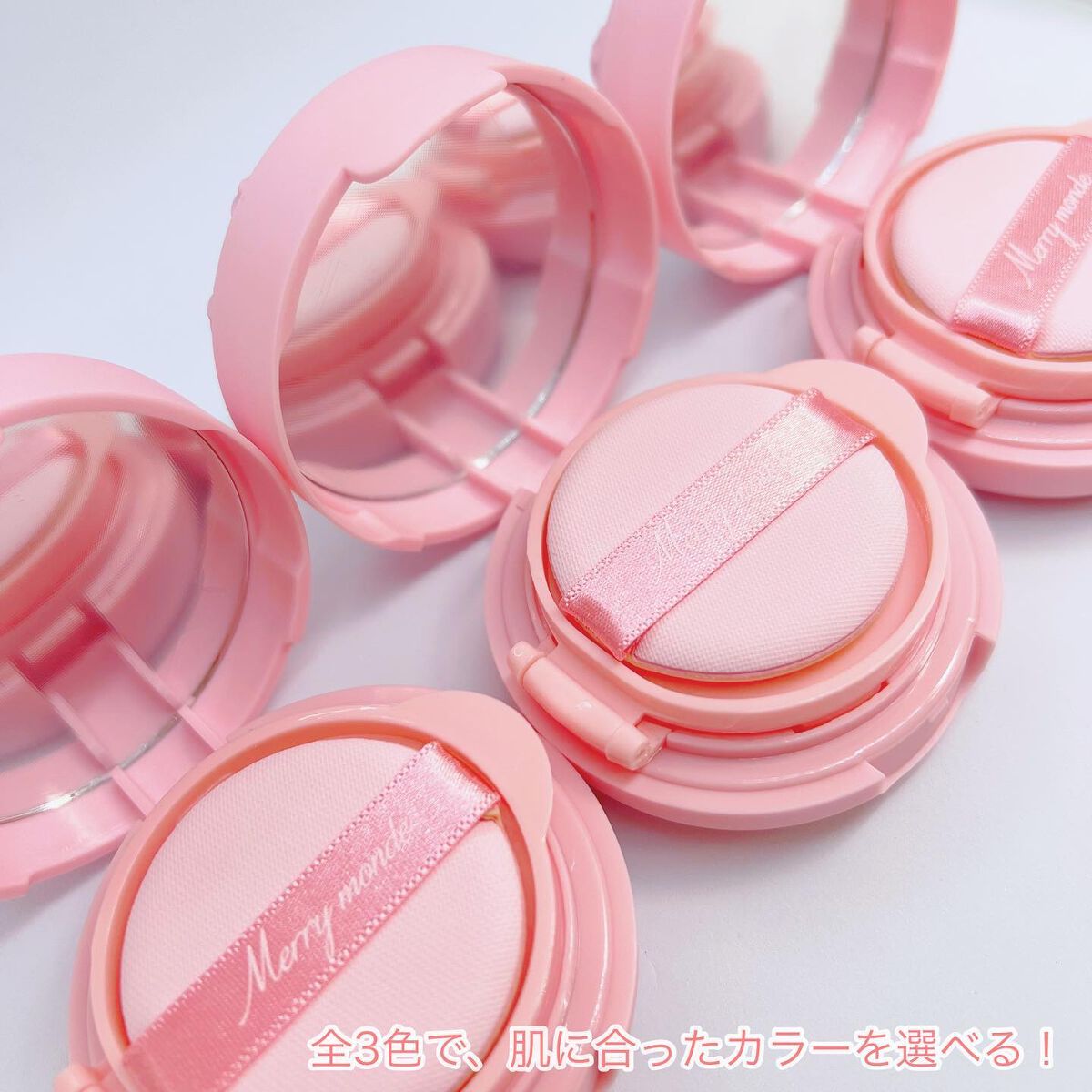 - SPF40PA++ 可愛さと製品力を兼ね備えたクッションファンデーション 「カバー力」「毛穴の凹凸」「軽さ」ケーキを連想させる特別なパッケージで視線をひきつけてプレゼントしやすいアイテムとして人気を集め、カカオプレゼントランキング1位を受賞、デザインだけでなく、韓国OEM・ODM最大手のCOSMAX(コスマックス)と共に単独開発した商品です。 ポイント1:アイデンティティなケーキのデザイン メリーモンドのユニークなアイデンティ「ケーキデザイン」は取り外し可能です #スペシャルデイ 童心に帰り、誰もが純粋な美しさを呼び覚まします。メリーモンドのクッションファンデで毎日があなたのハッピーバースデイ!ケーキのパーツは付け替え可能で、シンプルなパッケージとしてもお使い頂けます。 ポイント2:フィクシングシステム技術で薄膜を貼ったような、フォギーな仕上がり ポイント3:パーフェクトカバー、サラサラ、エアリーフェイットテクスチャー 毛穴の凹凸を綺麗にカバー、軽く密着し1日つけたてのようなお肌へ ポイント4:クリーンビューティ ヒノキ50,000pmとビーガン認証を取得 〈セット内容〉 本体1個(パッケージ+レフィル)、レフィル1個、パフ2個 2024年4月より全国のバラエティショップに販売スタート