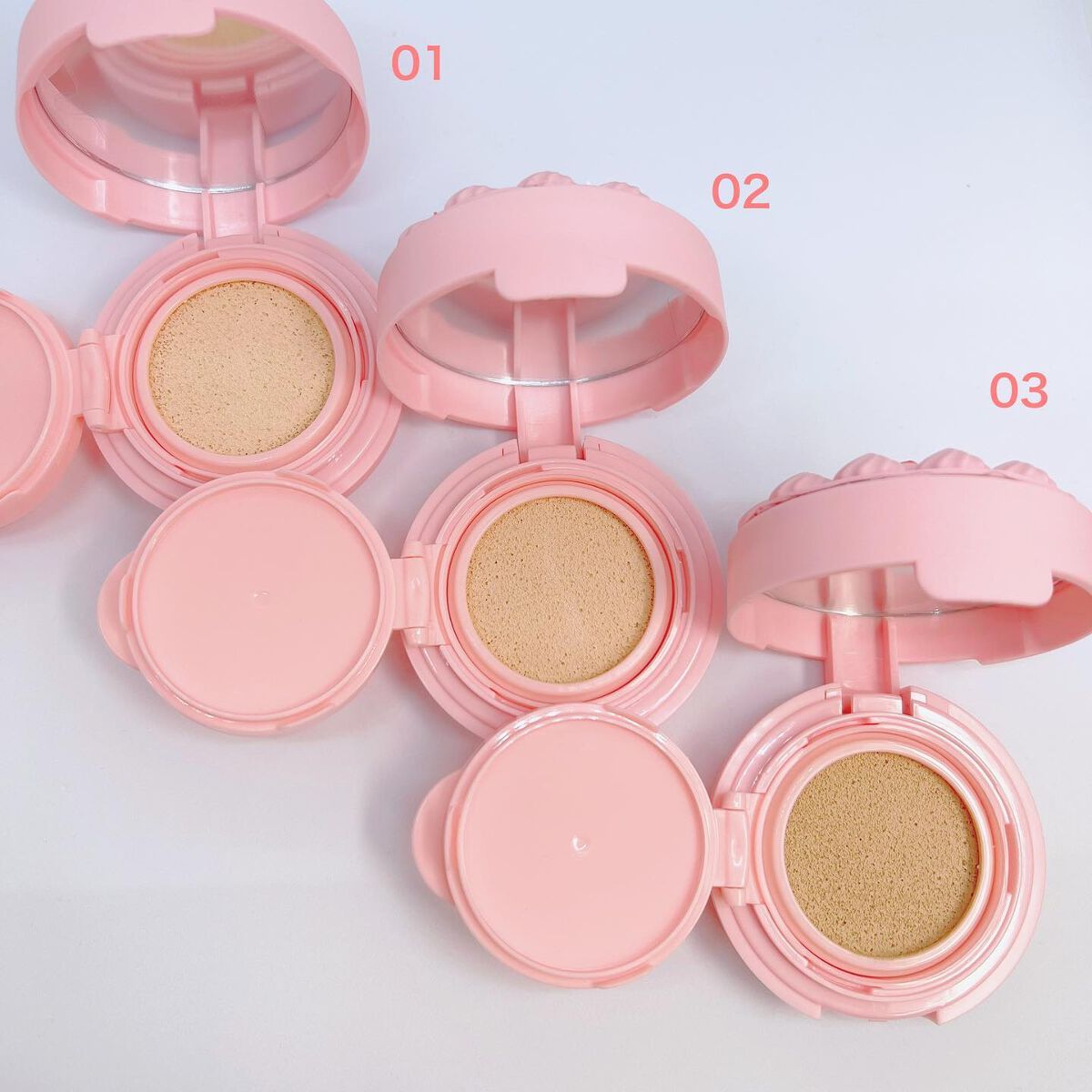 ビーガンのクッションファンデなの🙈 前から可愛いなぁって思ってて、評判も良いから購入🌸 カバー力はかなり高め!! しっかりメイクしたい日にオススメ🥹 ノンケミカル、パフには抗菌効果がついてて機能的! ベタつかないけど乾かないし軽いのにハイカバー、中々良いよ😭🩷🩷