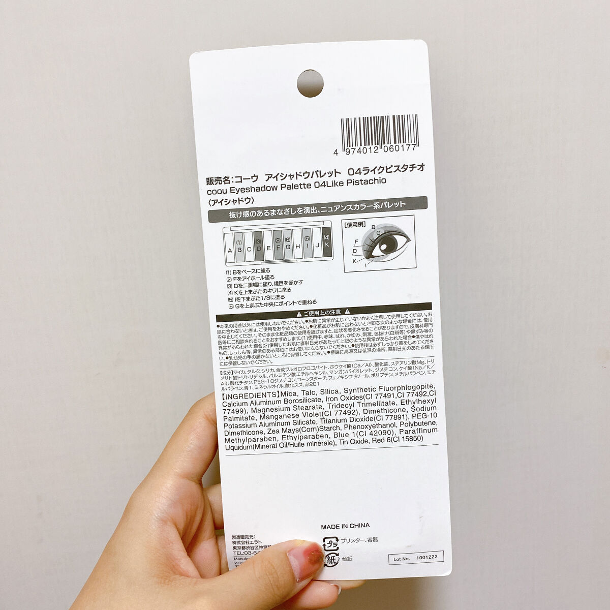 - <02 ドライブーケ> マイカ、タルク、ホウケイ酸(Ca/Al)、マンガンバイオレット、ポリブチレンテレフタレート、パルミチン酸エチルヘキシル、シリカ、ステアリン酸Mg、合成フルオロフロゴパイト、トリメリト酸トリトリデシル、ジメチコン、ポリイソブテン、酸化鉄、酸化チタン、コーンスターチ、ケイ酸(Na/K/Al)、フェノキシエタノール、ヒマワリ種子油、アクリレーツコポリマー、マイクロクリスタリンワックス、トリ(カプリル酸/カプリン酸)グリセリル、PEG-10ジメチコン、(エチレン/VA)コポリマー、ポリブテン、(スチレン/ブタジエン)コポリマー、酸化スズ、メチルパラベン、エチルパラベン、赤201、カプリリルグリコール、ミネラルオイル、Al、メトキシケイヒ酸エチルヘキシル、赤202、黄4 <03 ミュートサンセット> マイカ、タルク、ホウケイ酸(Ca/Al)、ポリブチレンテレフタレート、シリカ、パルミチン酸エチルヘキシル、マンガンバイオレット、トリメリト酸トリトリデシル、ステアリン酸Mg、合成フルオロフロゴパイト、酸化チタン、ポリイソブテン、酸化鉄、ジメチコン、ケイ酸(Na/K/Al)、フェノキシエタノール、コーンスターチ、ヒマワリ種子油、マイクロクリスタリンワックス、トリ(カプリル酸/カプリン酸)グリセリル、アクリレーツコポリマー、PEG-10ジメチコン、ポリブテン、(エチレン/VA)コポリマー、(スチレン/ブタジエン)コポリマー、酸化スズ、メチルパラベン、エチルパラベン、ミネラルオイル、カプリリルグリコール、Al、メトキシケイヒ酸エチルヘキシル、赤201、赤202 <04 ライクピスタチオ> マイカ、タルク、シリカ、合成フルオロフロゴパイト、ホウケイ酸(Ca/Al)、酸化鉄、ステアリン酸Mg、トリメリト酸トリトリデシル、パルミチン酸エチルヘキシル、マンガンバイオレット、ジメチコン、ケイ酸(Na/K/Al)、酸化チタン、PEG-10ジメチコン、コーンスターチ、フェノキシエタノール、ポリブテン、メチルパラベン、エチルパラベン、青1、ミネラルオイル、酸化スズ、赤201