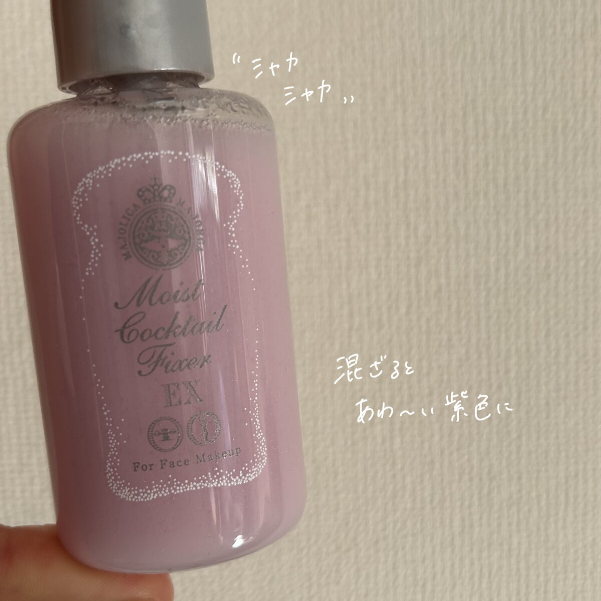 MAJOLICAMAJORCAモイストカクテルフィクサーEX【使った商品】モイストカクテルフィクサーEX【商品の特徴】¥1,320円(税込)60ml化粧水状おしろい(仕上げ用)【使用感】2層式で振るタイプのミストビシャってかかるが割と細かく馴...