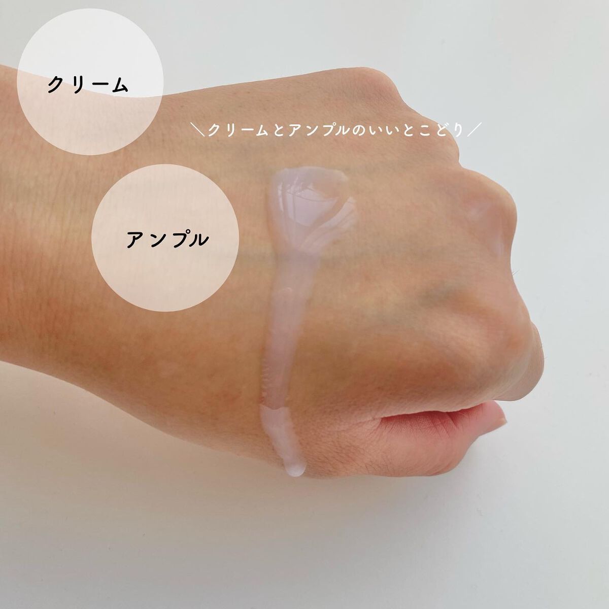 クリーム+アンプルの二層になっており使用前に十分振ってから使います🫧 少しとろみがあるテクスチャーでよく伸びてくれべたつきはない軽いつけ心地です🌾 香りも特になく使いやすい! 使用後はしっとりしてくれました😊 軽いつけ心地なので他の美容液などと重ねても重くならないのでお気に入りです💓