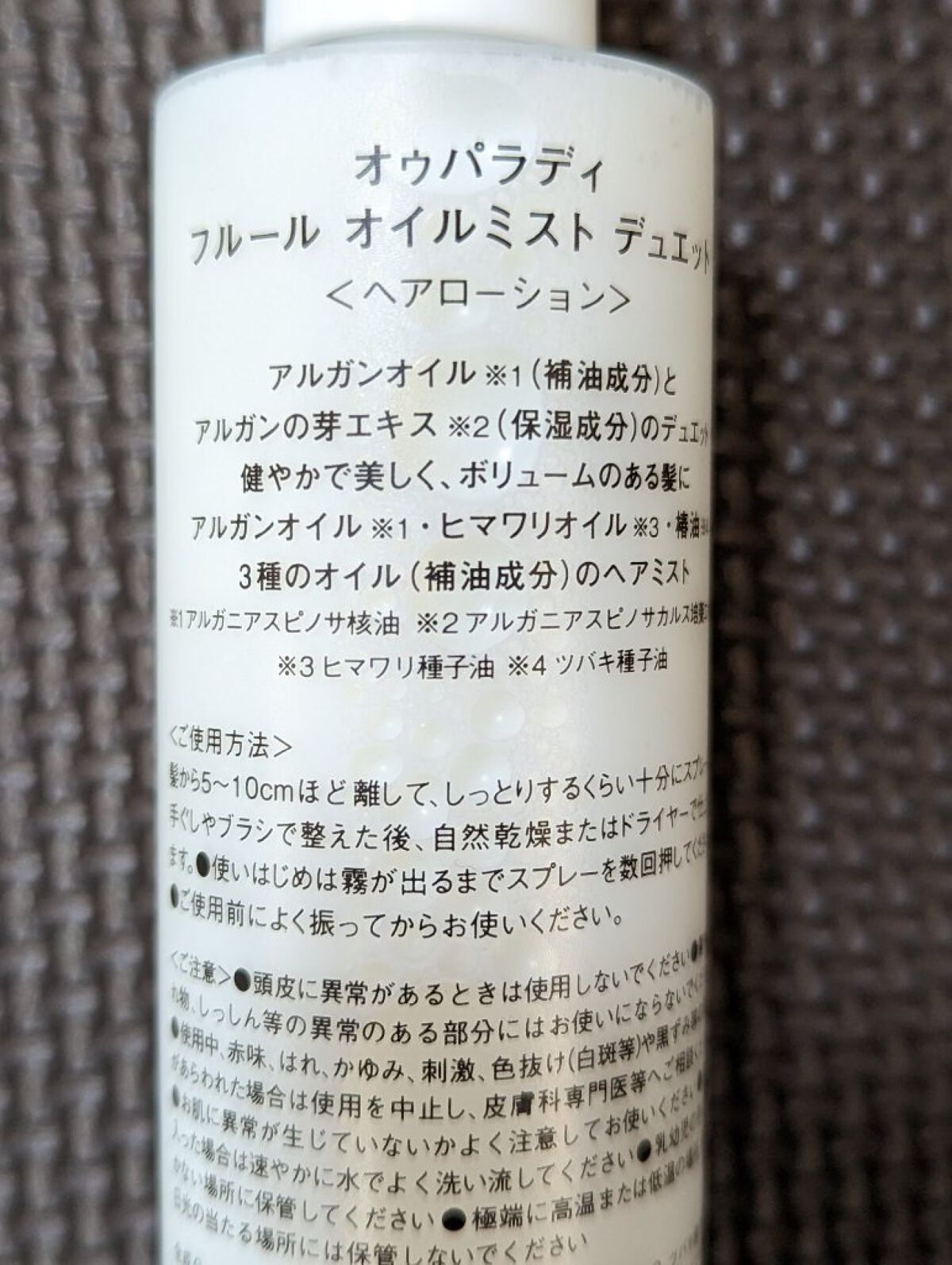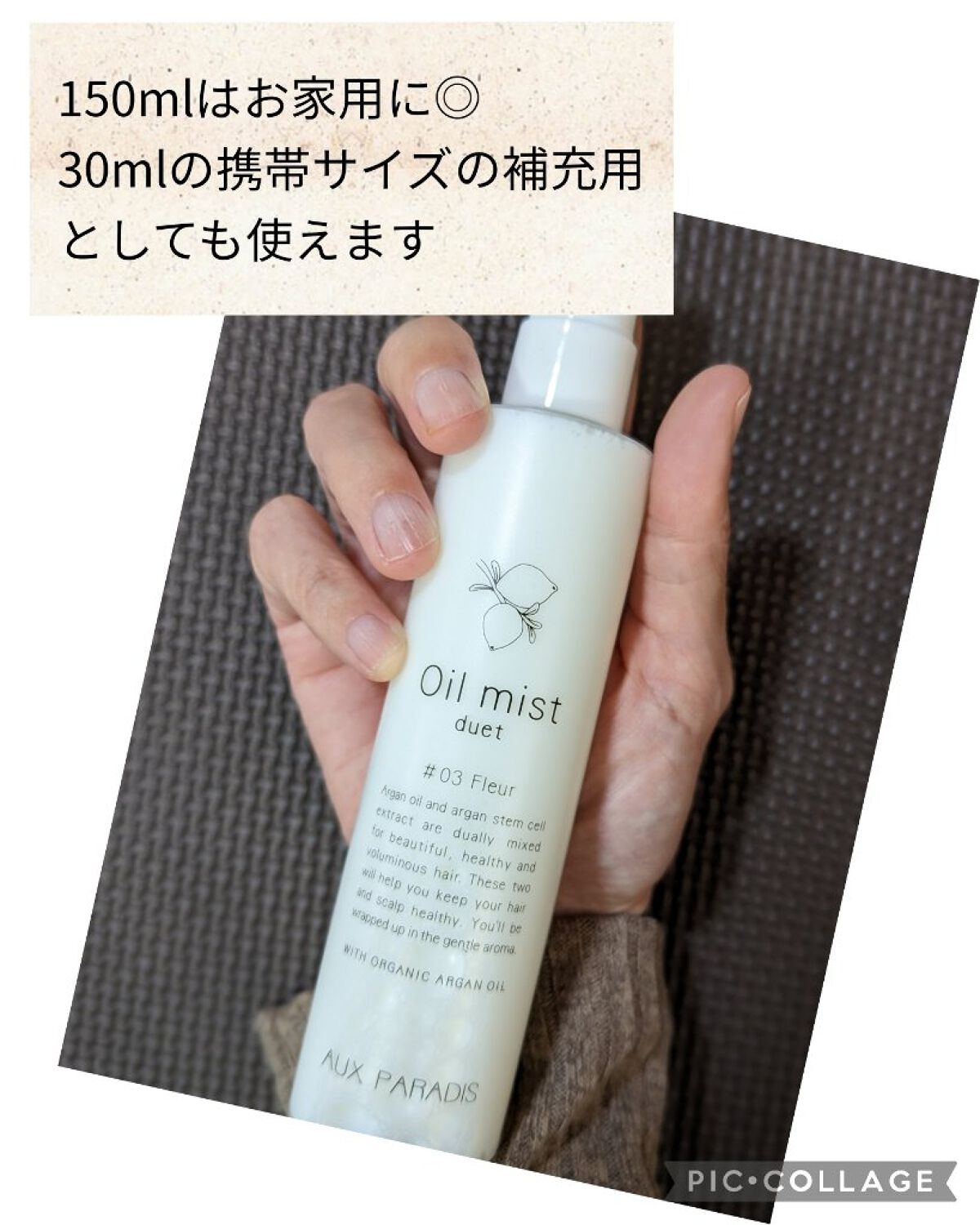 AUX PARADISのフルールオイルミストデュエット 皆さん使ったことありますか? 朝起きた時に毛先のパサつき、首後ろのうねり 根元に付けたくないけどまとまりが欲しいって時に使ってます。 特に外出先や旅行時にぴったり!オイルミストって二層に分かれてたりするから持ち運びはかさばるけどこれなら一本で寝癖直しにも香り付けにも良し!!