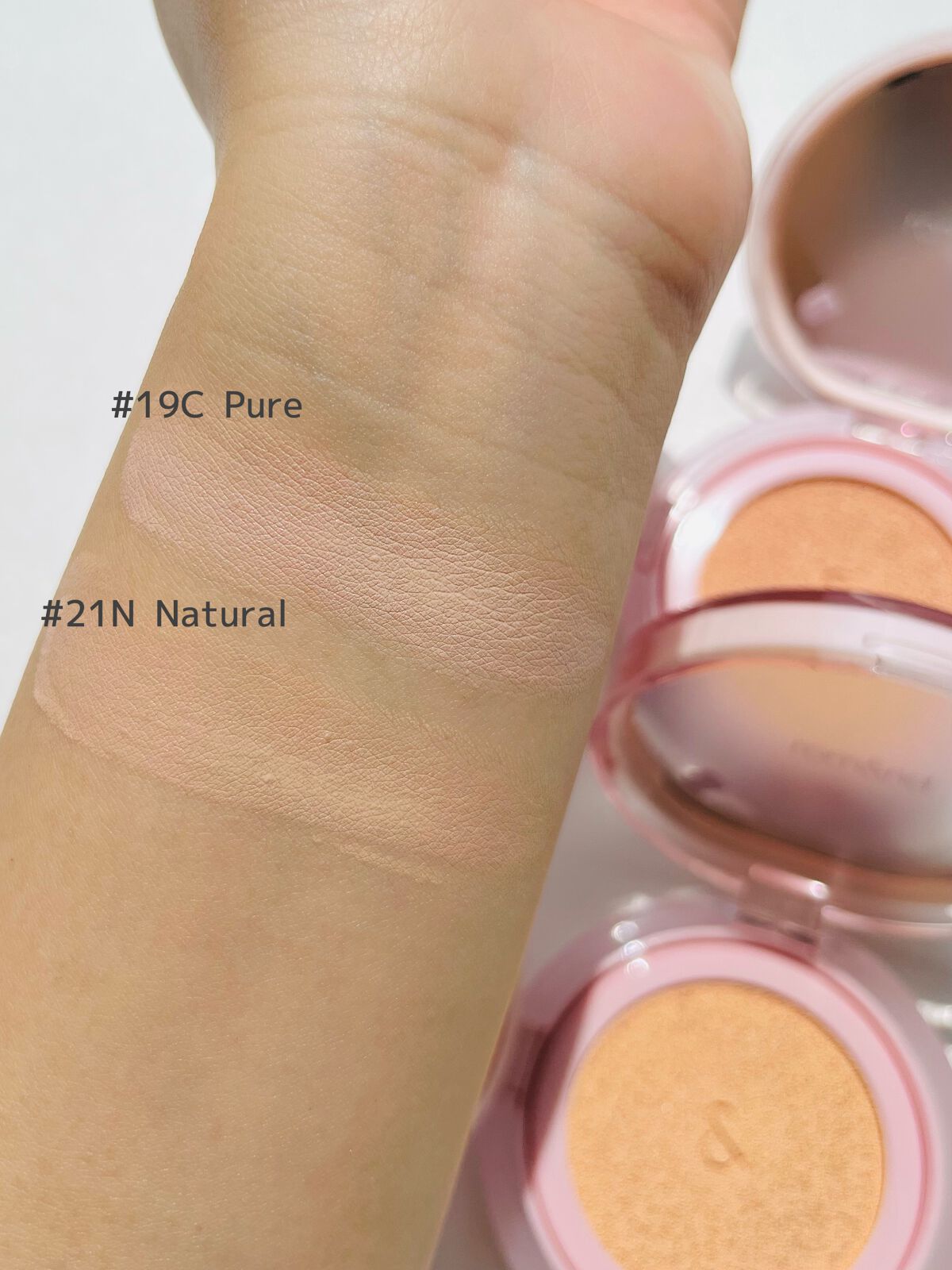 - <#19C ピュア> 水、シクロペンタシロキサン、酸化チタン、イソドデカン、トリメチルシロキシケイ酸、ジメチコン、プロパンジオール、エチルヘキサン酸セチル、ナイアシンアミド、1,2-ヘキサンジオール、PEG/PPG-18/18ジメチコン、PEG-10ジメチコン、酸化鉄、(アクリレーツ/メタクリル酸ポリトリメチルシロキシ)コポリマー、硫酸Mg、ポリグリセリル-3ポリジメチルシロキシエチルジメチコン、オクチルドデカノール、ジステアルジモニウムヘクトライト、合成フルオロフロゴパイト、水酸化Al、香料、ステアリン酸、アルミナ、トリエトキシカプリリルシラン、ポリヒドロキシステアリン酸、イソステアリン酸ポリグリセリル-4、アデノシン、エチレンジアミンジコハク酸3Na、トリイソステアリン酸イソプロピルチタン、ジエチルヘキサン酸ネオペンチルグリコール、BG、ヤマザクラ花エキス、ヒアルロン酸Na、ヒアルロン酸、アスコルビン酸 <#21N ナチュラル> 水、シクロペンタシロキサン、酸化チタン、イソドデカン、トリメチルシロキシケイ酸、ジメチコン、プロパンジオール、エチルヘキサン酸セチル、ナイアシンアミド、1,2-ヘキサンジオール、酸化鉄、PEG/PPG-18/18ジメチコン、PEG-10ジメチコン、(アクリレーツ/メタクリル酸ポリトリメチルシロキシ)コポリマー、オクチルドデカノール、硫酸Mg、ポリグリセリル-3ポリジメチルシロキシエチルジメチコン、ジステアルジモニウムヘクトライト、合成フルオロフロゴパイト、水酸化Al、香料、ステアリン酸、アルミナ、トリエトキシカプリリルシラン、イソステアリン酸ポリグリセリル-4、ポリヒドロキシステアリン酸、トリイソステアリン酸イソプロピルチタン、アデノシン、エチレンジアミンジコハク酸3Na、ジエチルヘキサン酸ネオペンチルグリコール、BG、ヤマザクラ花エキス、ヒアルロン酸Na、ヒアルロン酸、アスコルビン酸 <#23BE ベージュ> 水、シクロペンタシロキサン、酸化チタン、イソドデカン、トリメチルシロキシケイ酸、ジメチコン、プロパンジオール、エチルヘキサン酸セチル、ナイアシンアミド、酸化鉄、1,2-ヘキサンジオール、PEG/PPG-18/18ジメチコン、PEG-10ジメチコン、オクチルドデカノール、(アクリレーツ/メタクリル酸ポリトリメチルシロキシ)コポリマー、硫酸Mg、ポリグリセリル-3ポリジメチルシロキシエチルジメチコン、ジステアルジモニウムヘクトライト、合成フルオロフロゴパイト、水酸化Al、香料、ステアリン酸、アルミナ、トリエトキシカプリリルシラン、イソステアリン酸ポリグリセリル-4、ポリヒドロキシステアリン酸、トリイソステアリン酸イソプロピルチタン、アデノシン、エチレンジアミンジコハク酸3Na、ジエチルヘキサン酸ネオペンチルグリコール、BG、ヤマザクラ花エキス、ヒアルロン酸Na、ヒアルロン酸、アスコルビン酸