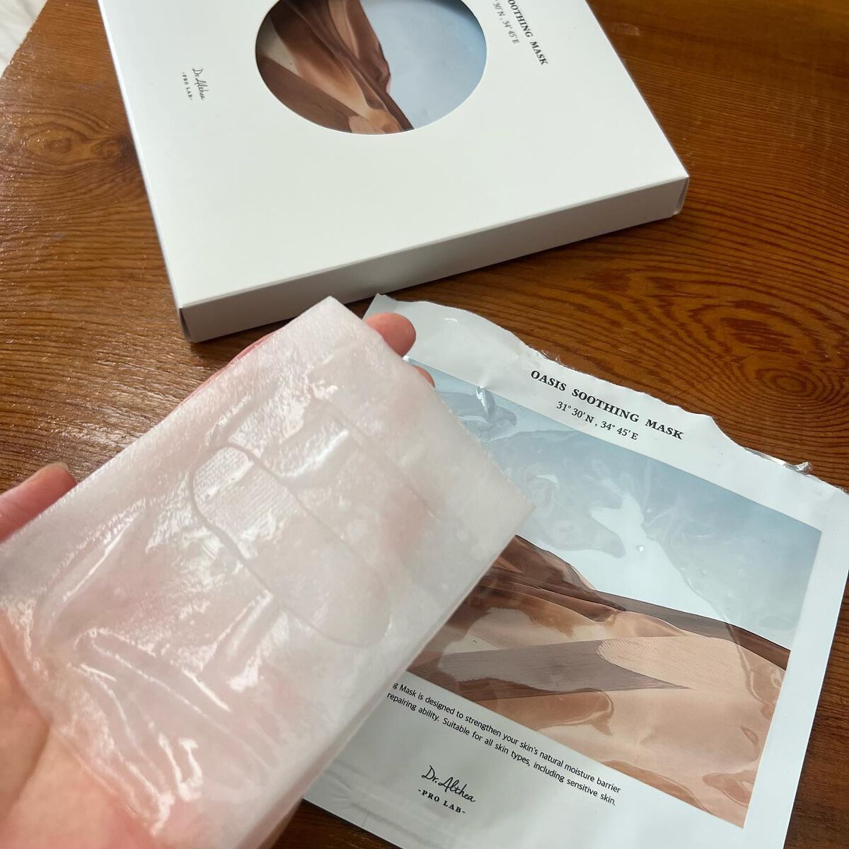 ドクターエルシアのオアシススージングマスクはアンプルがまるまる1本入ったひたひたのマスク😳 薄膜でのシートなのにしっかり水分補給してくれる🩷 復活草エキスやシラカバ樹液配合で、肌に栄養与えてくれる、話題のマスクなんだって! これ使うと一気に水分補給された感じがして、お肌回復☺️🤍