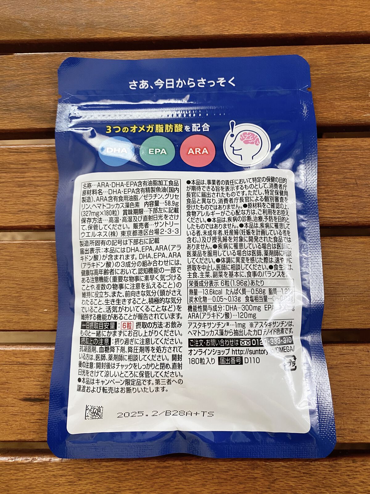 おかんにもらったシリーズそのにサントリーオメガエイドプラスだそう(まさかの350粒)ほんとよくわからないんだけど、サプリをやたら送ってくるwww調べてみたところこんなかんじ「オメガエイド」は、DHA・EPA・ARAの3種類のオメガ脂肪酸と、ル...