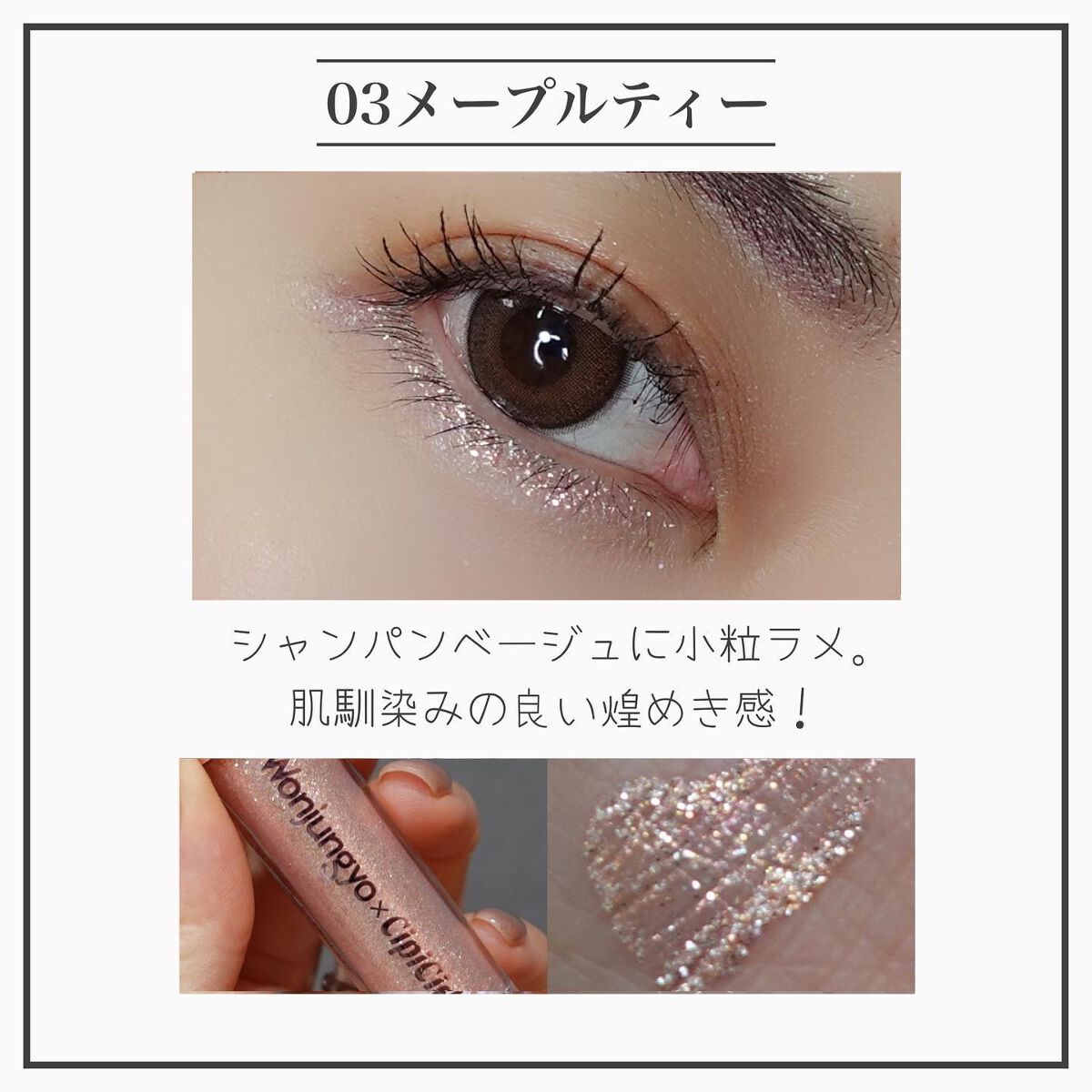 | リキッドアイシャドウランキング第9位 | 塗る時のコツは手早く伸ばすこと。塗り広げるとじゅわっと滲み出るような発色でかわいいです。 | 詳細を見る | |