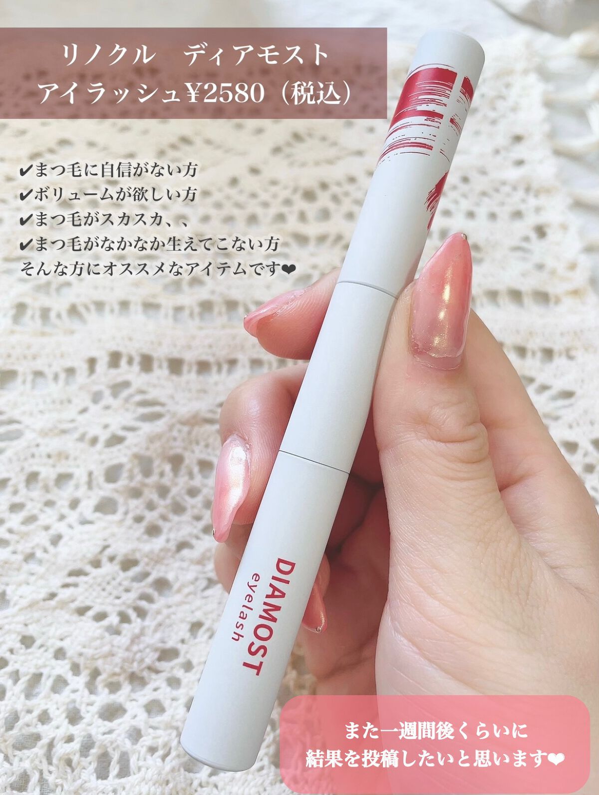 【ディアモストアイラッシュ】を使ってみたよ❣️これ、毛根からまつ毛をケアする高密度まつ毛美容液と、ボリュームアップ&カールアップ※ができる繊維入りまつ毛下地が1本になってるの✨とっても便利!美容液には、スカルプ成分のNcPAやキャピキシルなど...