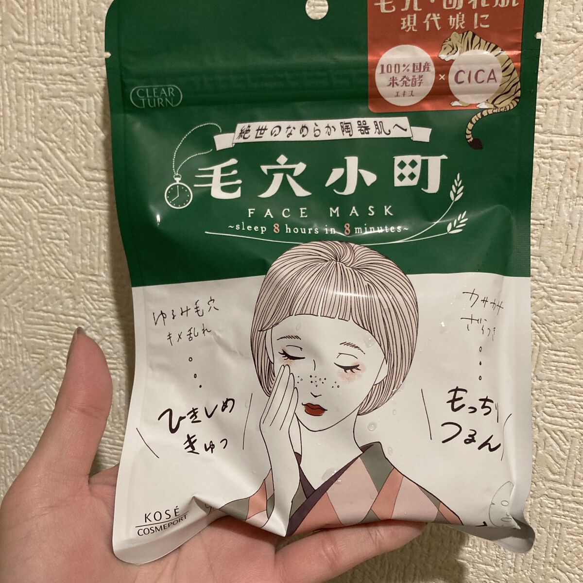 - 毛穴・肌あれが同時にケアできる、毛穴小町マスク! ①毛穴目立ち&肌あれをダブルでケア!なめらか陶器肌へ 水分・油分をバランスよく配合したみずみずしい美容液で、乾燥や皮脂による毛穴目立ちやあれ肌もケアします。キメのととのった、つるんとなめらかな陶器肌に導きます。 角質柔軟成分※3配合。肌をやわらげます。 100%国産米発酵エキス・米ぬかエキス・BG(保湿)をはじめとする発酵ライスモイスチャーCPX配合。ふっくらと保湿します。 ツボクサエキス・ドクダミエキス・BG(保湿)配合。ツボクサエキスは今話題のCICA成分です。肌をひきしめととのえます。 ※3 角質柔軟成分はリンゴ酸 ②角質ケアできる凸凹高密着シート コットン生まれでやわらかな肌触りの国産シートを採用。シートマスクの表面には凸凹のエンボス加工を施しているため、密着性が高く、はがしたマスクでやさしく顔をふきとることで角質ケアもできます。 ③心地よい眠りにみちびくようなリラックスフローラルの香り(天然香料配合) ④やさしい使い心地 弱酸性・無着色・無鉱物油・パラベンフリー・紫外線吸収剤フリー・シリコーンフリーのやさしい使い心地です。