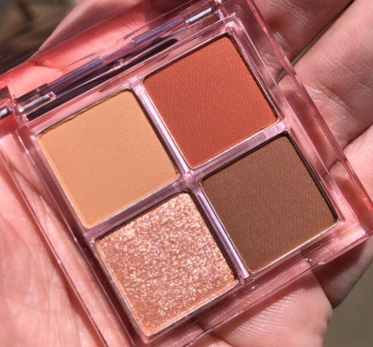 柔らかくて密着力の高いテクスチャーでマット3色ラメ1色のアイシャドウきなっています🥰 ソフトブラウンは大人っぽいシックなブラウン系の印象を演出できます🫶 明るさが欲しい方はアップルシナモンの方が良いかも🤔 甘めが好きな方はローズフォグが◎
