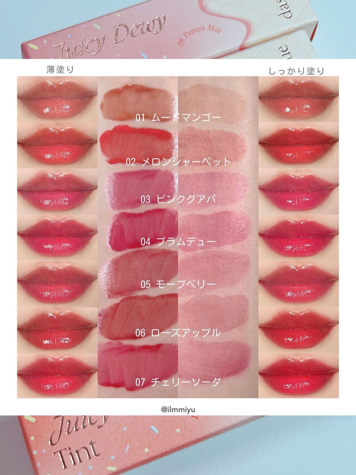 \dasiqueジューシーデュイティント/さくらパフェ🌸01 ムードマンゴー02 メロンシャーベット03 ピンクグアバ04 プラムデュー05 モーブベリー06 ローズアップル07 チェリーソーダ#08 パパイヤミルク#09 ピーチプディング#...