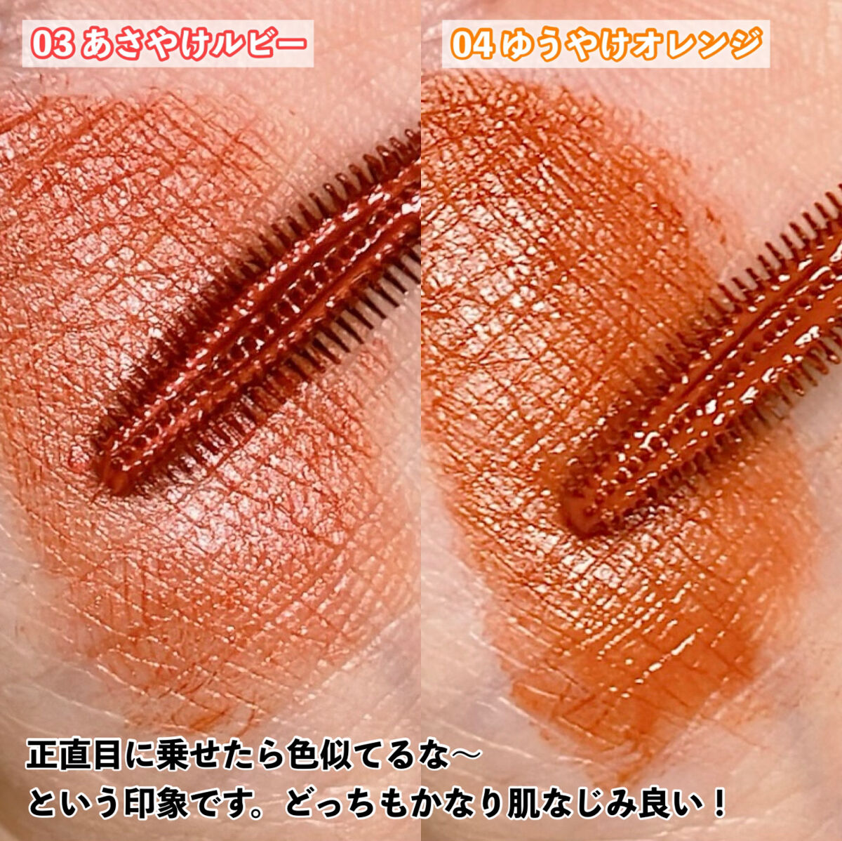 ✿チジャベージュは透け感のあるオレンジ🍊 ✿ポメロスキンはベージュブラウン ✿ヌカダミアはレッドブラウン ✿ヌーディピーナッツはオレンジコーラル🍑 ✿インコーラルはピンクレッド ✿コットンメルバは白味ピンク ✿ソルベバームは元気なオレンジレッド!