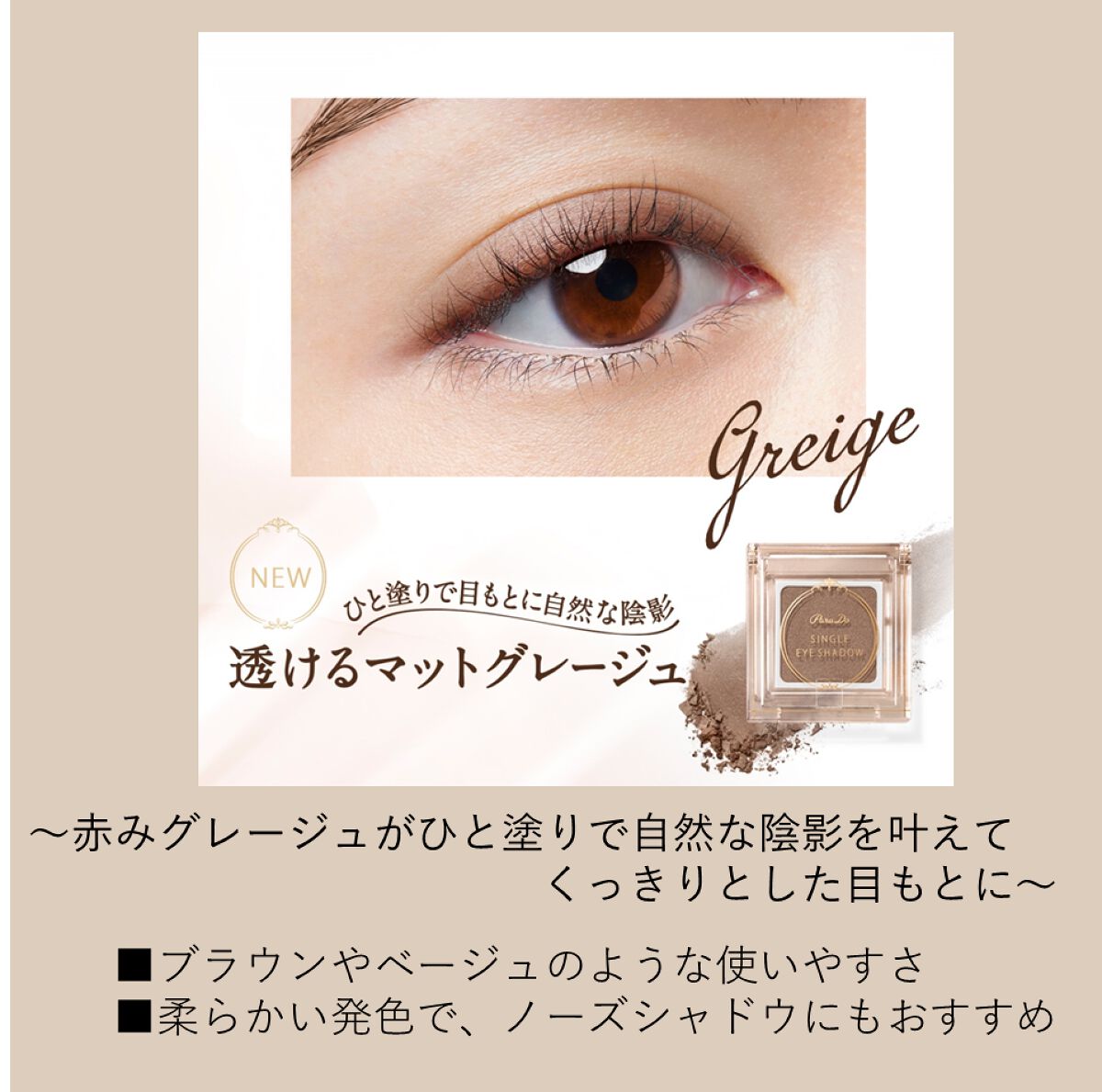 パラドゥのシングルアイシャドウGY01グレージュ おまけでついてました 定価は¥660円 透けるマットとかいうからどんなもんかなって思ってたけど、落ち着く感じ 単色で困ったときに使ってる落ち着いたシーンメモキツく見えないのがいい