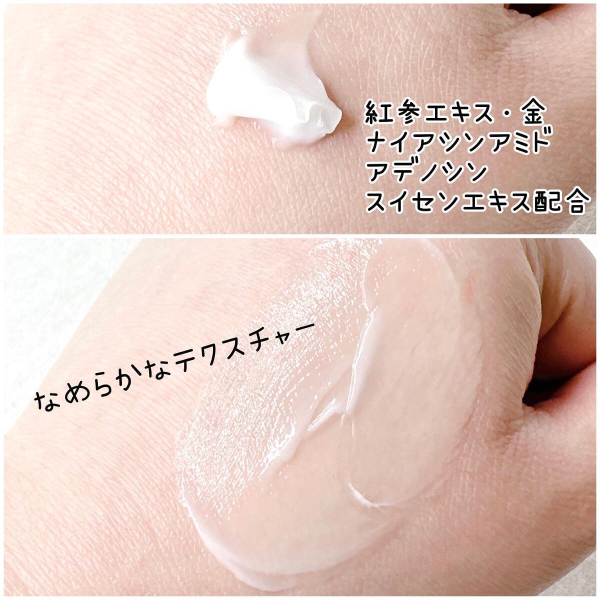 お肌の美白に優れたナイアシンアミド配合😍 しわの改善に優れたアデノシンの 美白・しわ改善ダブル機能商品だよ😮︎💕︎ そして、金成分(1ppm)配合により、 外部刺激による肌ストレスをケアして イキイキとした肌に導いてくれる😊 使用してみて💡´- ぷるんっとした保湿クリームで 伸びがよくてベタつきにくいから使いやすい🙆♀️ ベタつき苦手な人にもオススメ🩷