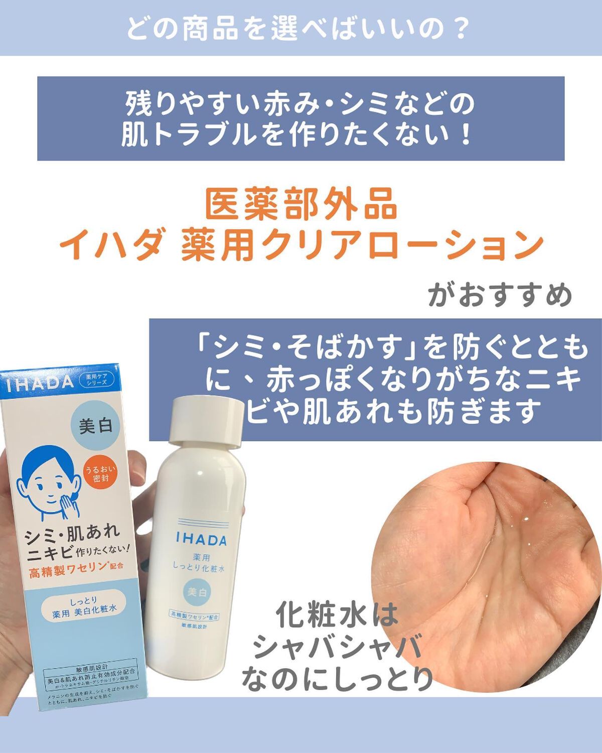 イハダ薬用クリアローション薬用クリアエマルジョン敏感肌やトラブルリスク肌向けに設計された化粧水&乳液♪高精製ワセリン配合で瞬時にうるおい保護膜を形成し、乾燥などの外部刺激から肌を守ります。肌の3大悩み(シミ・そばかす、肌荒れ・乾燥、ニキビ)を...
