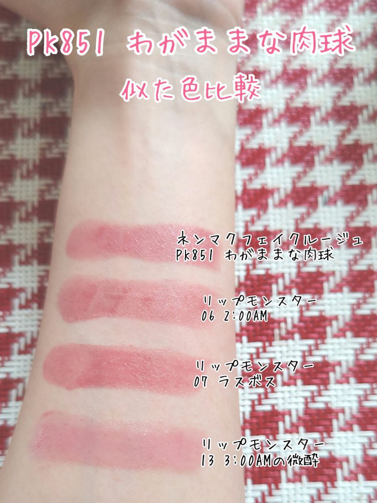 2023年5月16日発売のヴィセネンマクフェイクルージュ。税込1,540円、リップモンスターとの比較画像あり!近所のドラッグストアで先行販売していたのでフライイングゲットしてきました✨ブルベに向いていそうだなぁと気になっていたPK851わがま...