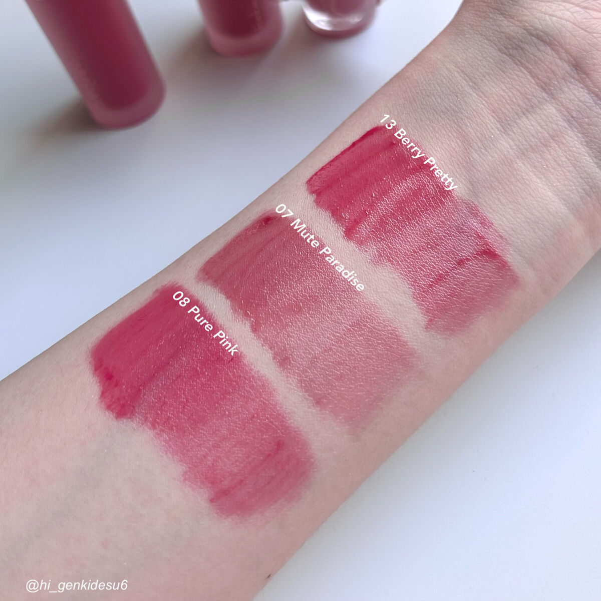 ツヤは砂糖を煮つめたシロップみたいな甘〜い光沢感!! 密着力が高いので唇を「んまっ」と擦り合わせてもリップが動きにくい。 このティントはツヤも綺麗ですしカラバリも豊富で、沢山持っているリップの中でも一軍です👍🏻
