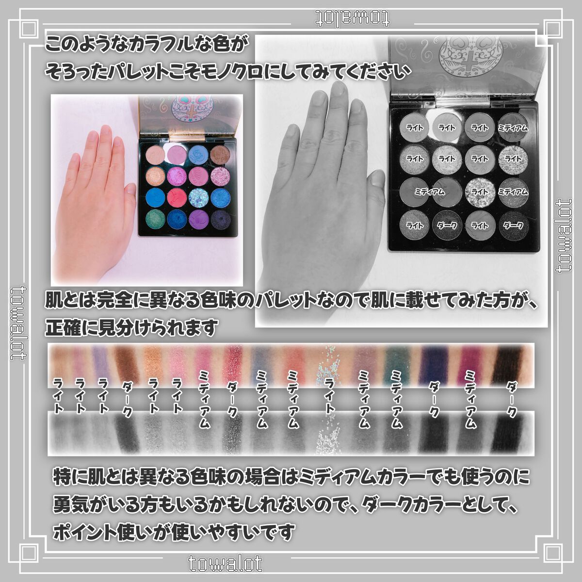ブルベ冬向け⛄️モノクロ系アイシャドウ🎨ブルベ冬向けと何人かのレビューを見たため、私も購入してみました!【🌹各色のパレット上と実際の印象の違い】写真を見てもらったらわかるかな、パレットの左下は肌につけると思ったよりギラギラというか単純な白!じ...