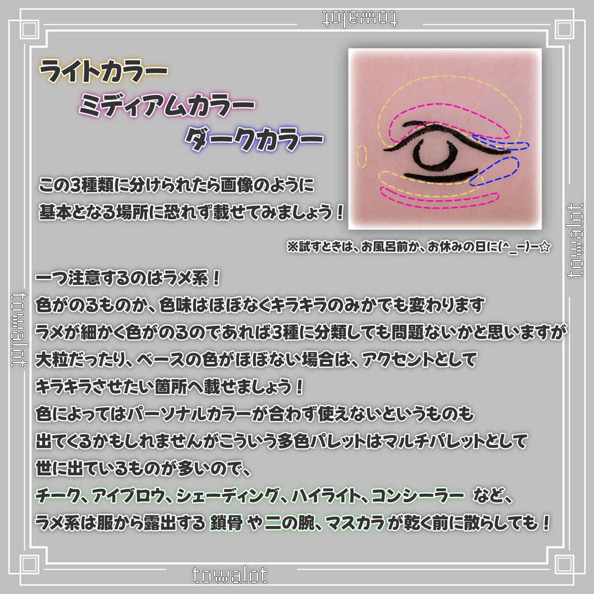 | 1〜4までの番号がかいてあって、その順に塗ると綺麗なアイメイクができるそうです♪どれも普段使いにバッチリなカラーが集まっています♪ | 詳細を見る |
