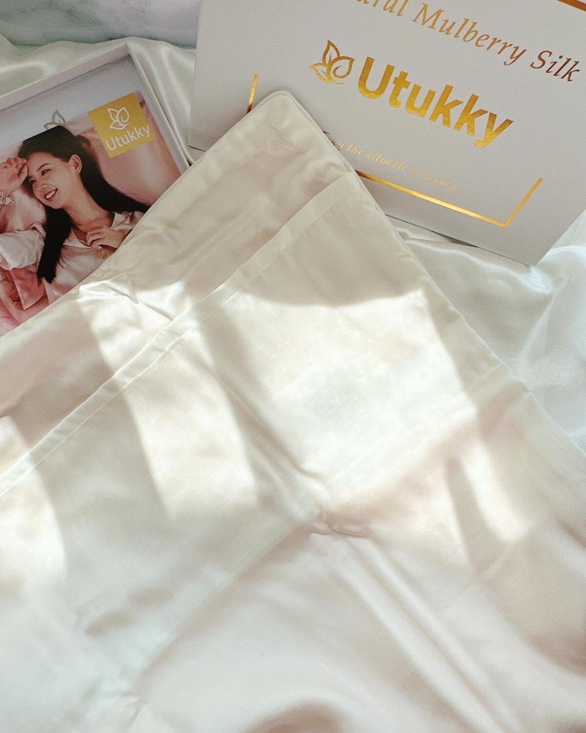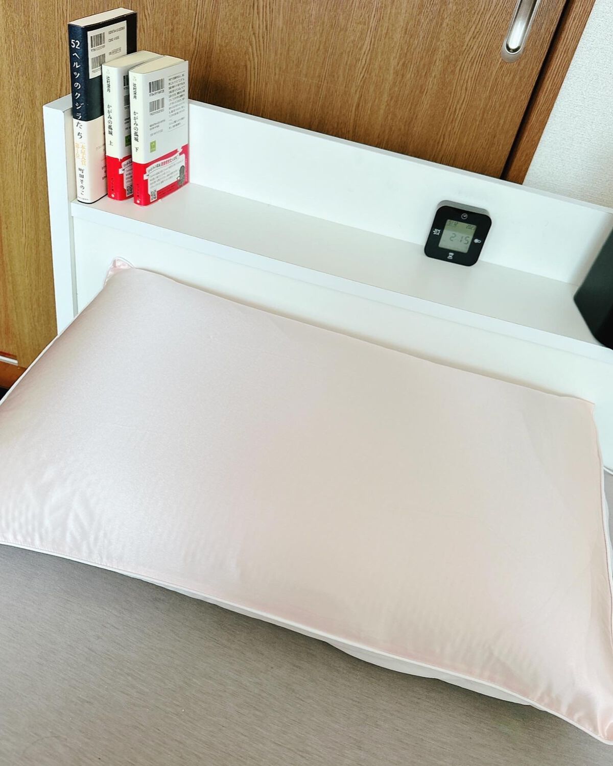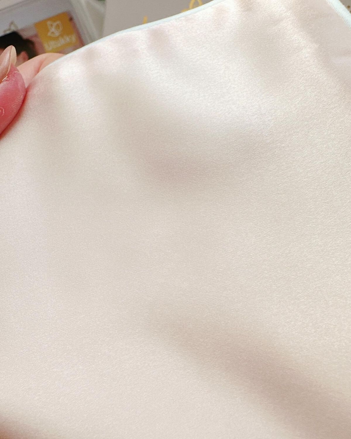 シルク独特の光沢感で高級感がある! シルクは人間の肌と同じくたんぱく質で 構成されているから、吸湿性と放湿性にも 優れていてお肌に優しい🧡 摩擦が起きにくいから 朝起きて髪が絡むこともなく 高級感もあってすごくよかった🦋✨