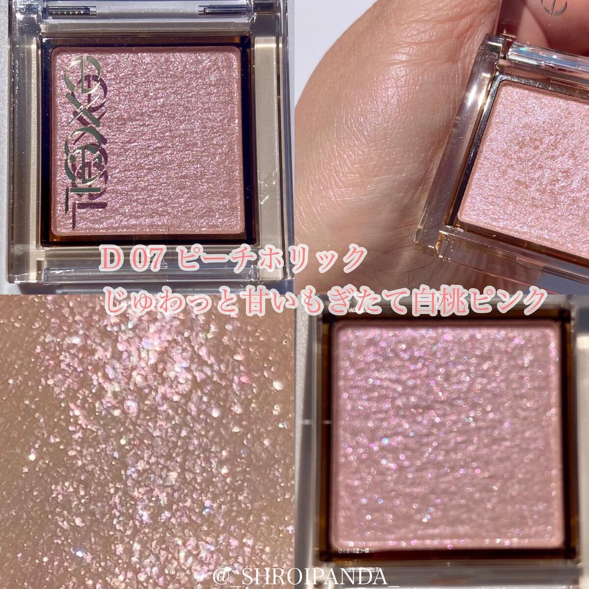 エクセルのアイプランナーから限定カラーが発売になるよ📣5/23発売!黄桃、完熟桃、白桃をイメージした「桃シャドウ🍑」大粒偏光パールが入りでキラッキラでとにかく可愛い🥹動画でこの輝き見て欲しい💎頑張って文字入れもしてみました!笑動画が多くて、く...