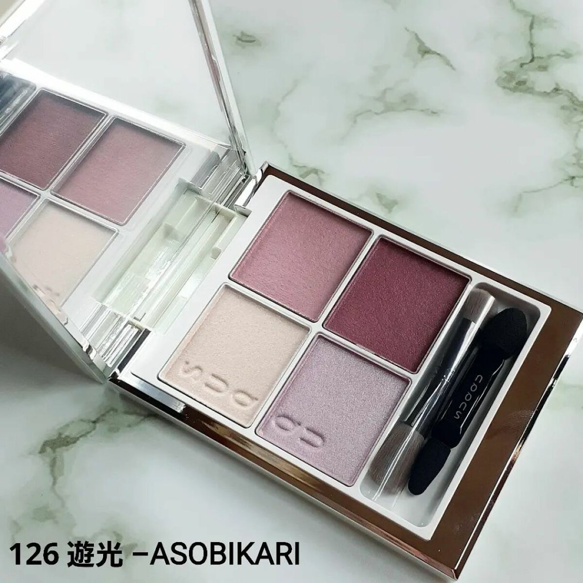 そして今までにない新しい質感❗ 粉なんだけど硬めのクリームのような感じ😳 繊細なシルバーラメが煌めくマット4色のパレットで、ナチュラルな発色🧡 硬めのクリームみたいな質感が、しっとりとしていて肌にピタッと密着👍❤️ 粉飛びもしないです‼ 肌馴染みが良いカラーなので、普段使いもしやすいかな🙋♀️