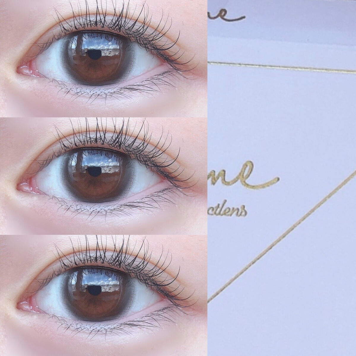 ピュアベール🫧 チューズミーの一番人気ベイビーブラウンに次ぐ新定番レンズ 瞳が光を取り込んでキラキラ透明感たっぷり。裸眼が黒目の私でもナチュラルに色素薄い瞳になる🫶🏻 エッセンスベージュ🧸 黄味が強すぎないベージュカラーだからブルベの私も浮かずに使えたよ!細フチがくっきりしていなくて瞳がちゅるんと見えるデザインも可愛い。 セラムグレー💠 まるでガラス玉みたいにちゅるちゅる。水色っぽいグレーだから透明感たっぷりでうるうる🥺意外と日常使いしやすいのもいい!