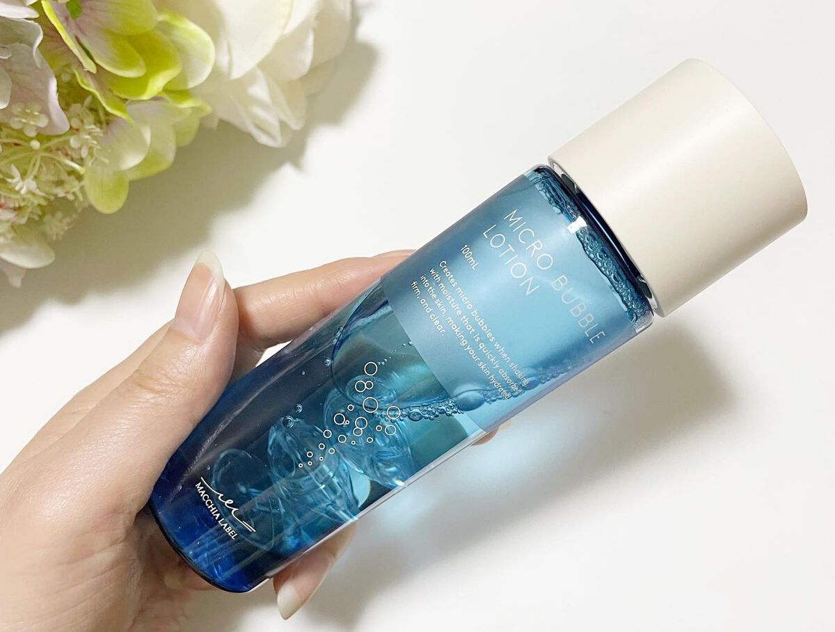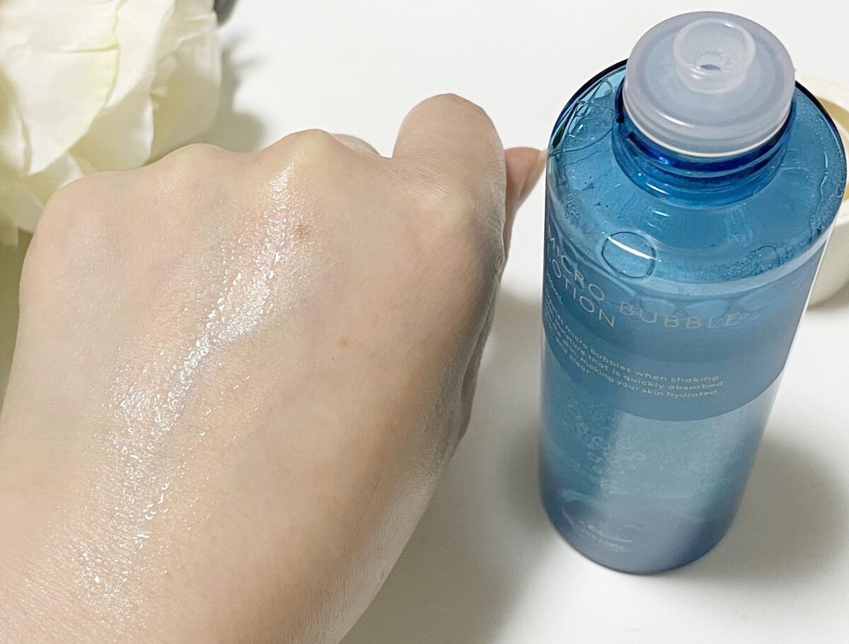 振ってファインバブルを発生させる攪拌ボール入りのボトルが印象的🫧 目に見えない程の微細泡で浸透力*UPも期待されてる🆙 ほんの少しトロミのあるテクスチャーで肌馴染みも良い◎