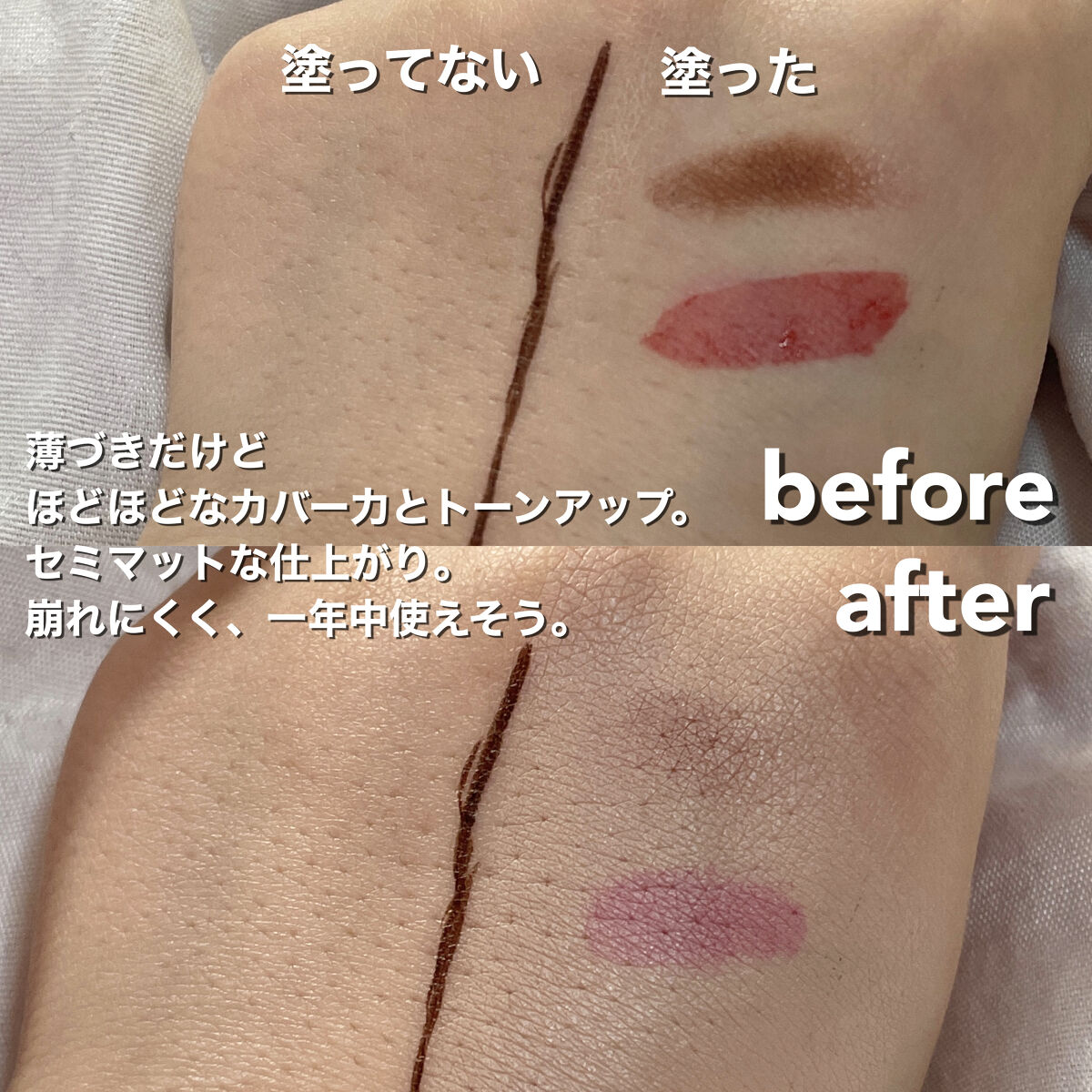 ロムアンドのクッションファンデといえば、 仕上がりの綺麗さ、ムラのできにくさ、カバー力 すべてバランスがよくて、言ってしまえば完璧というか 程よいトーンアップと、セミマットな仕上がり 本当に、悪いところが何も無くて 一年中愛用しちゃうよ