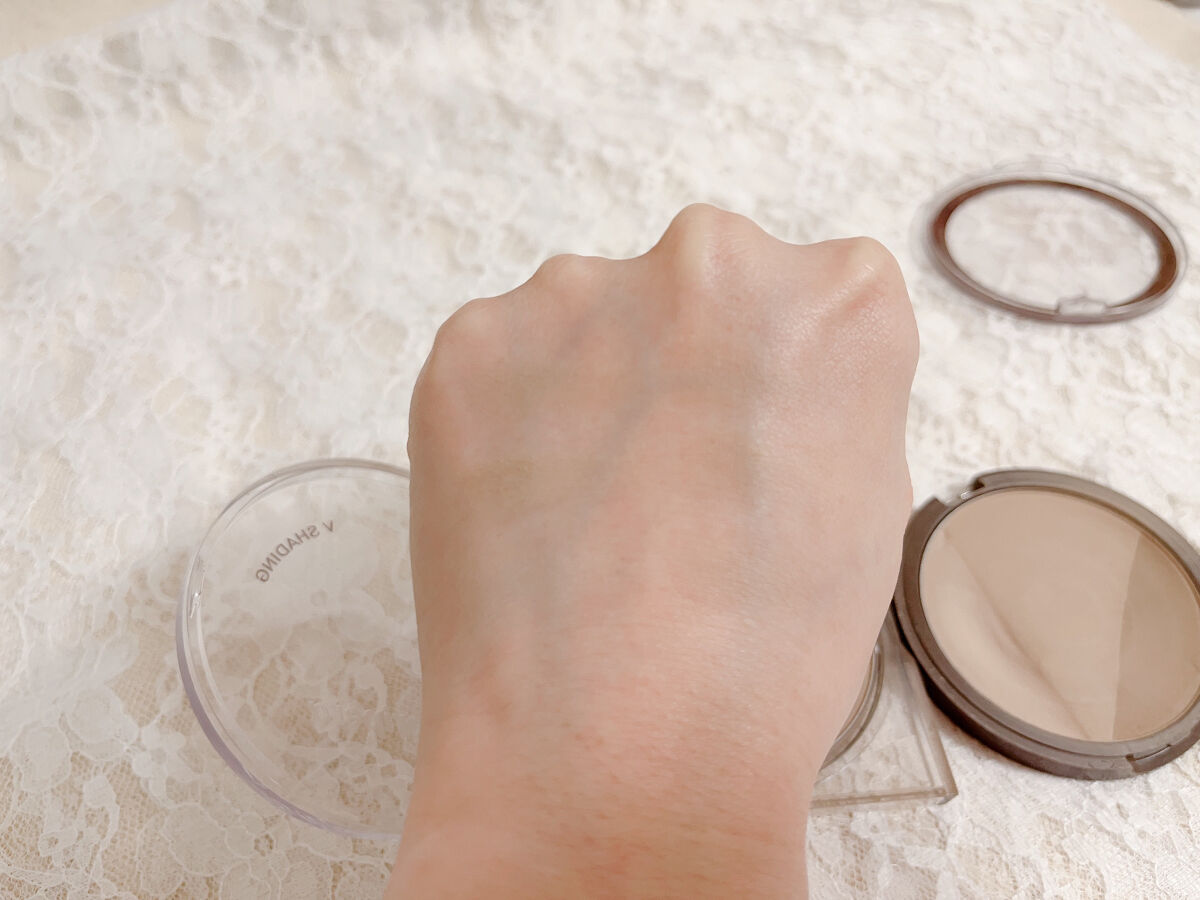 ふんわりトーンアップできるマットなハイライト。 発色強すぎず調節しやすくて使いやすく、さらに崩れにくい。 ふわっと柔らかな色づき方で、発色は弱め。不自然な仕上がりにならずナチュラルに決まるのに、ちゃんと陰影は表現ができる。 結構しっかりピンクみを感じる色味をしているので、ピンク系のハイライトが浮いてしまう人は要注意です。 テクスチャはかなりさらさらで、粒子が細かく、肌をさわると気持ちいい仕上がり。 さらさらのパウダーなので、普段使用しているハイライトに比べると圧倒的に崩れにくいなと感じました! 薄づきなので初心者さんでもかなり使いやすいと思います。 今までこういうの探してたけどなかなか出会えなかったアイテムで、出会えてうれしい。