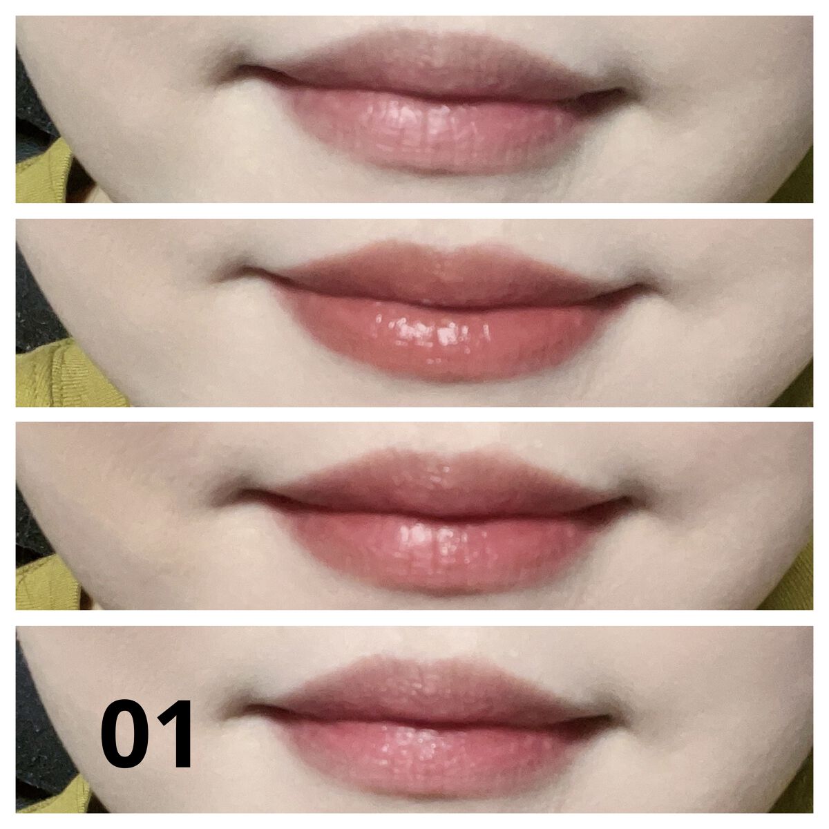 実際はシアーで微かに赤みがあるブラウンぽい雰囲気があるブラックでした。 塗布した感じは、グロスみたいなツヤツヤ系で乾燥も問題なさそうな印象です👍🏻 発色めちゃくちゃいいので、単体で使う時は調節しながら塗布するのがオススメ! 単色でも組み合わせても可愛い有能アイテム✨
