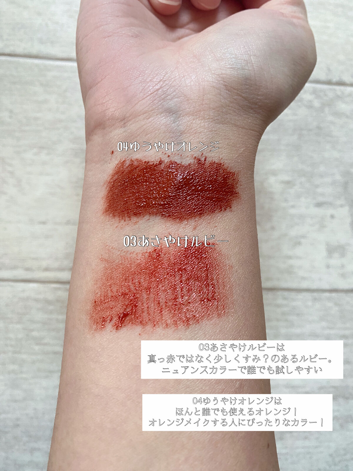 - <01 ブラック> イソドデカン、トリメチルシロキシケイ酸、ポリエチレン、パルミチン酸デキストリン、酸化鉄、ジステアルジモニウムヘクトライト、水添ポリイソブテン、ポリアクリレートクロスポリマー-6、炭酸プロピレン、ミツロウ、マイクロクリスタリンワックス、変性アルコール、ペンチレングリコール、カプリリルグリコール、アルギニン、セリン、グルタミン酸、水、ヒドロキシプロピルトリモニウム加水分解コムギタンパク、トコフェロール、フェノキシエタノール <02 たそがれブラウン> イソドデカン、トリメチルシロキシケイ酸、ポリエチレン、酸化鉄、パルミチン酸デキストリン、ジステアルジモニウムヘクトライト、水添ポリイソブテン、ポリアクリレートクロスポリマー-6、炭酸プロピレン、マイクロクリスタリンワックス、ミツロウ、変性アルコール、ペンチレングリコール、カプリリルグリコール、アルギニン、セリン、グルタミン酸、水、ヒドロキシプロピルトリモニウム加水分解コムギタンパク、トコフェロール、フェノキシエタノール <03 あさやけルビー> イソドデカン、トリメチルシロキシケイ酸、ポリエチレン、パルミチン酸デキストリン、ジステアルジモニウムヘクトライト、水添ポリイソブテン、ポリアクリレートクロスポリマー-6、炭酸プロピレン、マイクロクリスタリンワックス、ミツロウ、変性アルコール、ペンチレングリコール、カプリリルグリコール、アルギニン、セリン、グルタミン酸、水、ヒドロキシプロピルトリモニウム加水分解コムギタンパク、トコフェロール、フェノキシエタノール、[+/-]、酸化鉄、マイカ <04 ゆうやけオレンジ> イソドデカン、トリメチルシロキシケイ酸、ポリエチレン、パルミチン酸デキストリン、ジステアルジモニウムヘクトライト、水添ポリイソブテン、ポリアクリレートクロスポリマー-6、炭酸プロピレン、マイクロクリスタリンワックス、ミツロウ、変性アルコール、ペンチレングリコール、カプリリルグリコール、アルギニン、セリン、グルタミン酸、水、ヒドロキシプロピルトリモニウム加水分解コムギタンパク、トコフェロール、フェノキシエタノール、[+/-]、酸化鉄、マイカ <06 よあけブルージュ> イソドデカン、トリメチルシロキシケイ酸、ポリエチレン、パルミチン酸デキストリン、ジステアルジモニウムヘクトライト、水添ポリイソブテン、ポリアクリレートクロスポリマー-6、炭酸プロピレン、マイクロクリスタリンワックス、ミツロウ、変性アルコール、ペンチレングリコール、カプリリルグリコール、アルギニン、セリン、グルタミン酸、水、ヒドロキシプロピルトリモニウム加水分解コムギタンパク、トコフェロール、フェノキシエタノール、[+/-]、マイカ、酸化チタン、酸化鉄、シリカ、コンジョウ、酸化スズ <05 ゆうやみラベンダー> イソドデカン、トリメチルシロキシケイ酸、ポリエチレン、パルミチン酸デキストリン、ジステアルジモニウムヘクトライト、水添ポリイソブテン、ポリアクリレートクロスポリマー-6、炭酸プロピレン、マイクロクリスタリンワックス、ミツロウ、変性アルコール、ペンチレングリコール、カプリリルグリコール、アルギニン、セリン、グルタミン酸、水、ヒドロキシプロピルトリモニウム加水分解コムギタンパク、トコフェロール、フェノキシエタノール、[+/-]、マイカ、酸化チタン、酸化鉄、シリカ、コンジョウ、酸化スズ