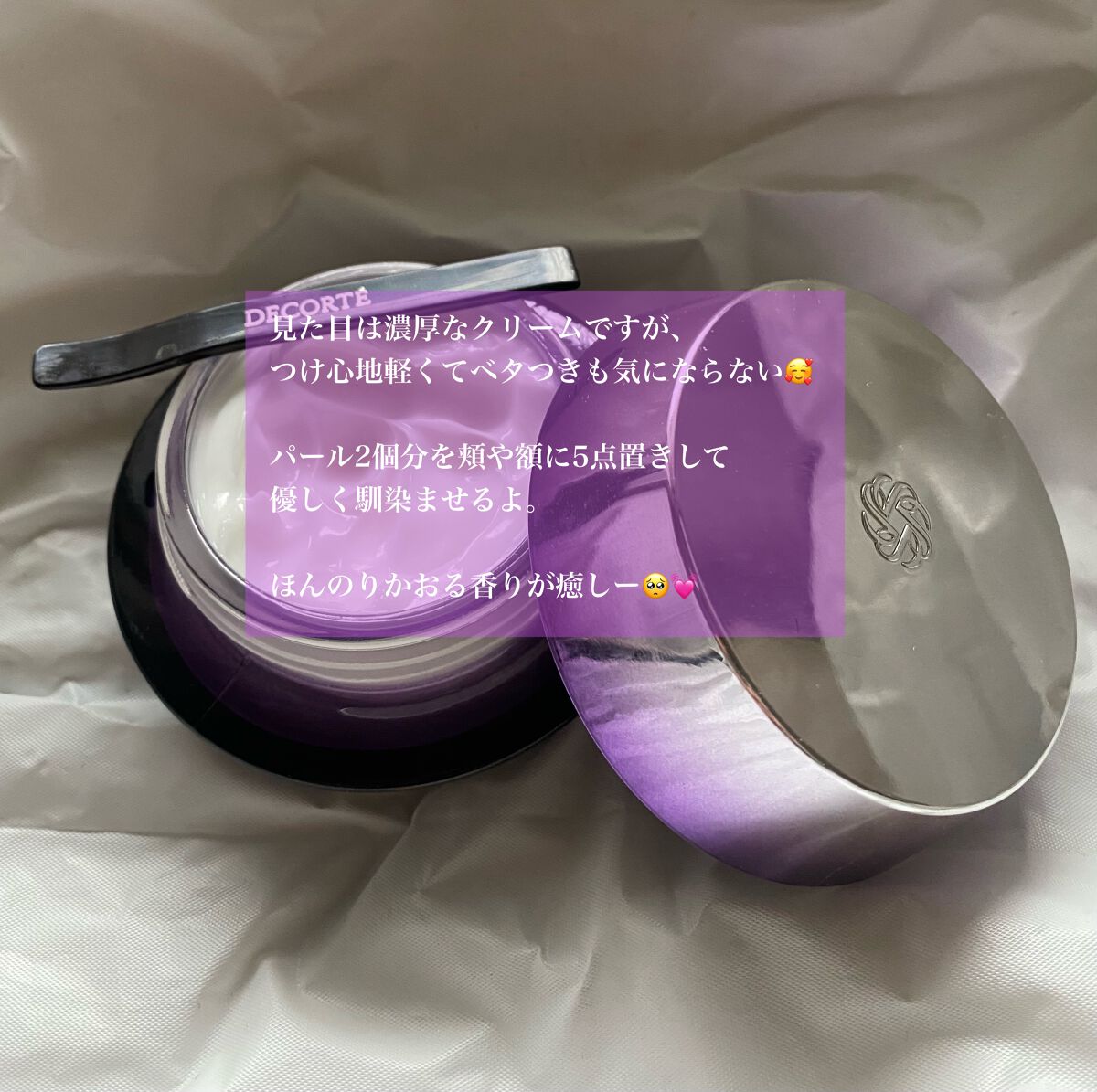 睡眠不足でも、3時間多く眠ったような肌へ。 なんて素敵なキャッチコピー♡ 1gのクリームに1兆個のナイトカプセルが肌をかけめぐりながら美を放ち肌の可能性を引き出すまさしく進化系ナイトクリーム💎 保湿力がすごく高いのに重くない! 伸びも肌馴染みも良いテクスチャもお気に入りー🩷