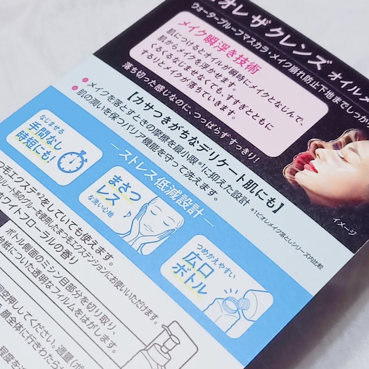 - つけるだけメイク瞬浮き、くるくるなじませずに落ちる! ウォータープルーフマスカラ・毛穴のメイクまでしっかりオフするのに、肌つっぱりにくい。 【カサつきがちなデリケート肌にも使える】 ・肌になじませるときの摩擦を最小限*1に抑えた設計 ・肌の潤いを保つバリア機能を守って洗えます。 【ストレス低減設計】 ・なじませる手間なしで時短になる ・まさつレスな洗い心地 ・つめかえやすい広口ボトル ●まつ毛エクステをしていても使えます。*2 ●ほのかなホワイトフローラルの香り *1ビオレメイク落としシリーズ内比較 *2シアノアクリレート系のグルーを使用したまつ毛エクステンションにお使いいただけます。
