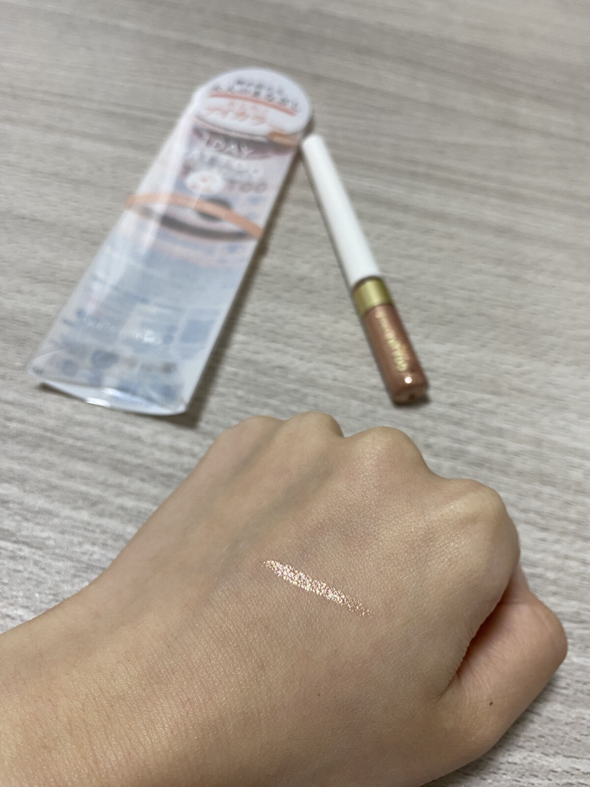 繊細なパールが入っていてまぶたを明るく見せてくれます。 このアイベースありなしでアイシャドウの発色も違います。 アイベースを塗るとアイシャドウパレットの見たままの発色になる感じがします。 ベタつかなくて使いやすくて、プチプラ価格なのでアイシャドウの下に仕込むだけでこれだけアイシャドウの発色と色持ちが良くなるのはおすすめです。