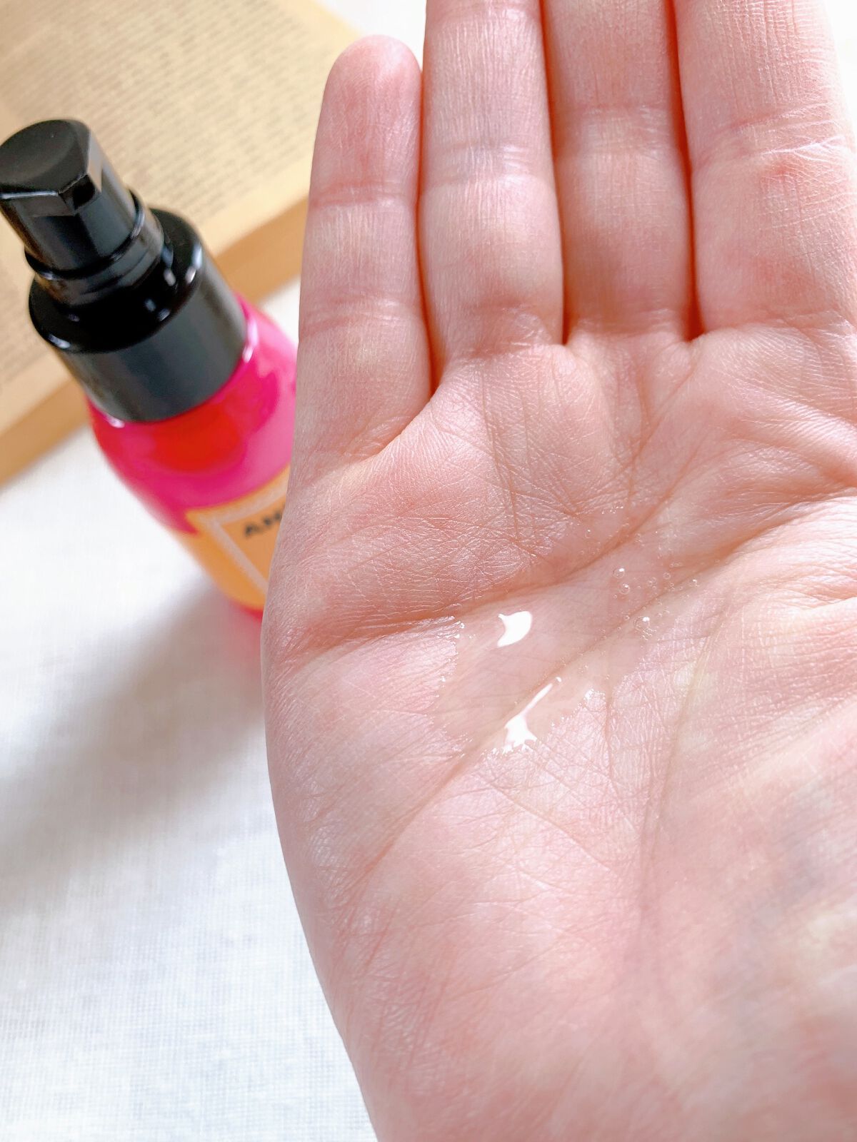 伸びの良いテクスチャーで、べたつかない使いごごちが気に入ってた。べたつかないから化粧下地としても使っていたよ。 白浮きしないのも嬉しいポイントでした。 シャンプーの後に使ってたよ。 ストンとまとまるところが良かったけど、何となく重たい感じになってしまうからリピは無しです。