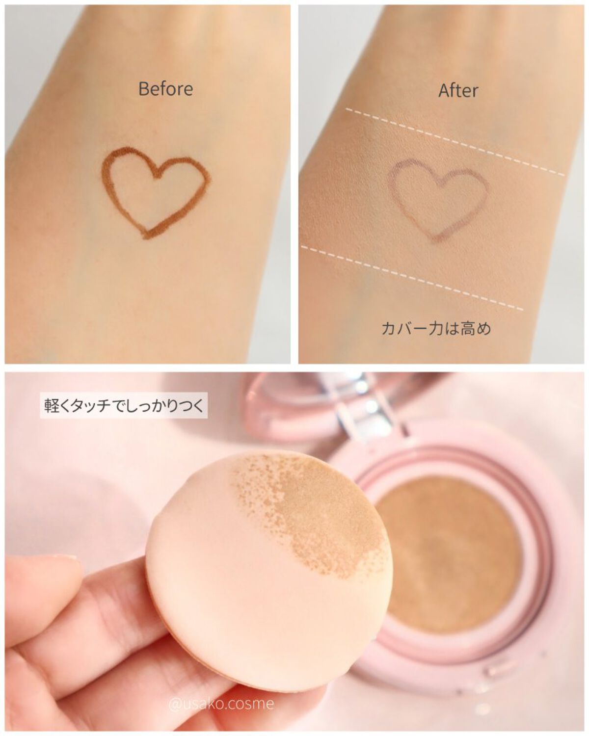 私は肌の赤みがあるけど、赤みを抑えてくれる感じがした。 セミマットの仕上がりのきれいさと、化粧持ちの良さ。 濃いシミや肝斑はコンシーラー使った方が良いけど、薄いシミや色ムラは補正してくれる感じ! 厚塗り感がないし、肌もきれいに見える👍 時間がたつと、肌がくすみやすいけど、これを使った日はあれ?今日きれいだなと思った😮💓 ・肌の色ムラや毛穴をきれいにカバー・軽い仕上がりで厚塗り感がない・皮脂吸着パウダーが化粧崩れを防止 長時間美しさが続く・汗や皮脂に強く、マスクにもうつりにくい。・SPF38・PA+++で紫外線もカット。