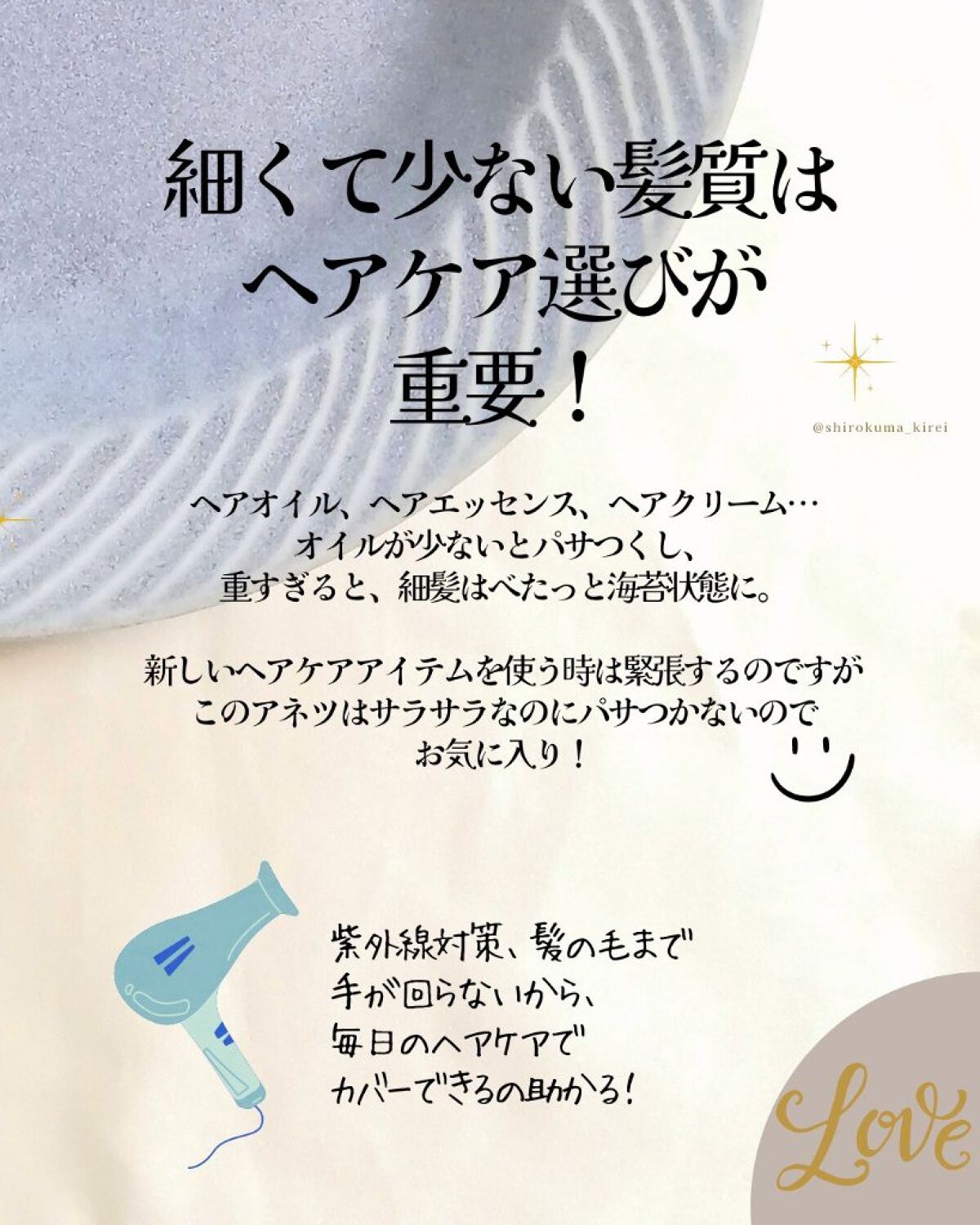 これめっちゃよかった🥹💛『ANETSUプレミアム ヘアエッセンスオイル』特許とってるアウトバスヘアオイル使ってみたんだけど…ドライヤーとかアイロンの前に仕込むだけで、髪めっちゃ守られてる感ある🔥しかも、乾かしたあとサラッサラでまとまりも◎✨な...