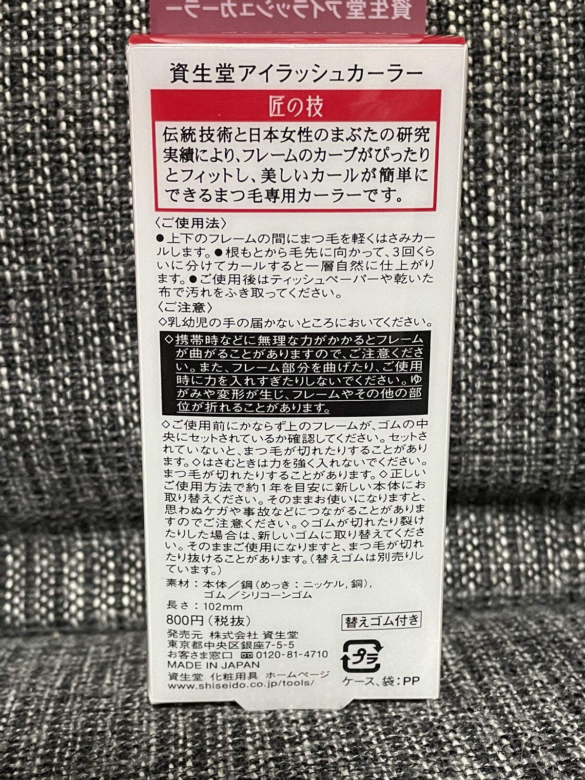 - 匠の伝統技を集結させたまつ毛専用カーラー。 まつ毛の生え際からきれいにカール。 日本女性のまぶたの研究知見と伝統的な加工技術を惜しみなく集結。 緻密に計算されたカーブフレームなど、一つひとつ丁寧に調整し完成させます。 熟練した職人にしか作り出せない、手仕事による逸品です。 替えゴム1コ付き。 素材 : 本体/鋼 (めっき:ニッケル,銅),ゴム/シリコーンゴム 長さ : 103mm ※2024年8月21日~「アイラッシュカーラー 213」から「アイラッシュカーラー」に名称変更 【価格改定のお知らせ】 「資生堂 アイラッシュカーラー」は、このたび原材料価格の高騰を受け、 価格を改定させていただきます。 2024年8月21日(水)以降、本品の在庫がなくなり次第、新価格で販売いたします。 現価格 880円(税込) 新価格 1,320円(税込)