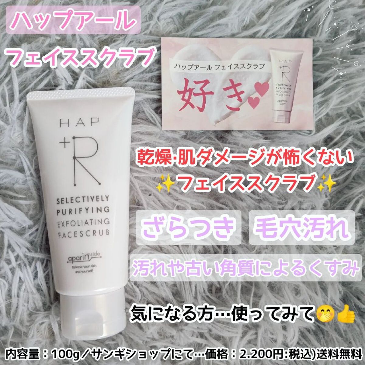 今朝の洗顔料🌿HAP+R🌟フェイススクラブアットコスメでお買い物した時に頂戴いたしました🥰かなり粒が大きなフェイススクラブ香りは穏やかな香り🌿アパタイトをスクラブ粒子化したっぷりと配合したフェイススクラブです。🟢ざらつき🟢くすみ(古い角質や汚...