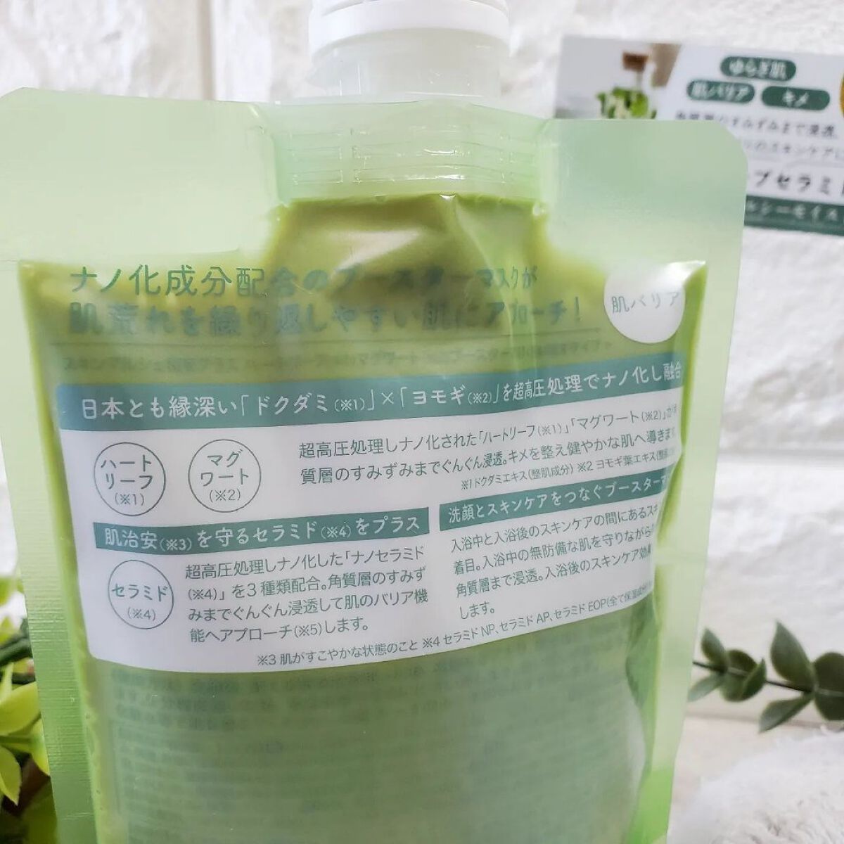 - キメ整うヘルシーモイスト肌へ!洗顔後にプラスして使用する洗い流すタイプのマスクです。お風呂上がりのスキンケア効果をサポートするナノハーブセラミド*1が角質層のすみずみまで浸透。ゆらぎ肌や肌バリア、肌のキメにアプローチし肌荒れを防いで健やかな肌へ整えます。 *1.超高圧処理を施した施したドクダミエキス(整肌成分)、ヨモギエキス(整肌成分)、セラミドNP、セラミドAP、セラミドEOP(全て保湿成分)