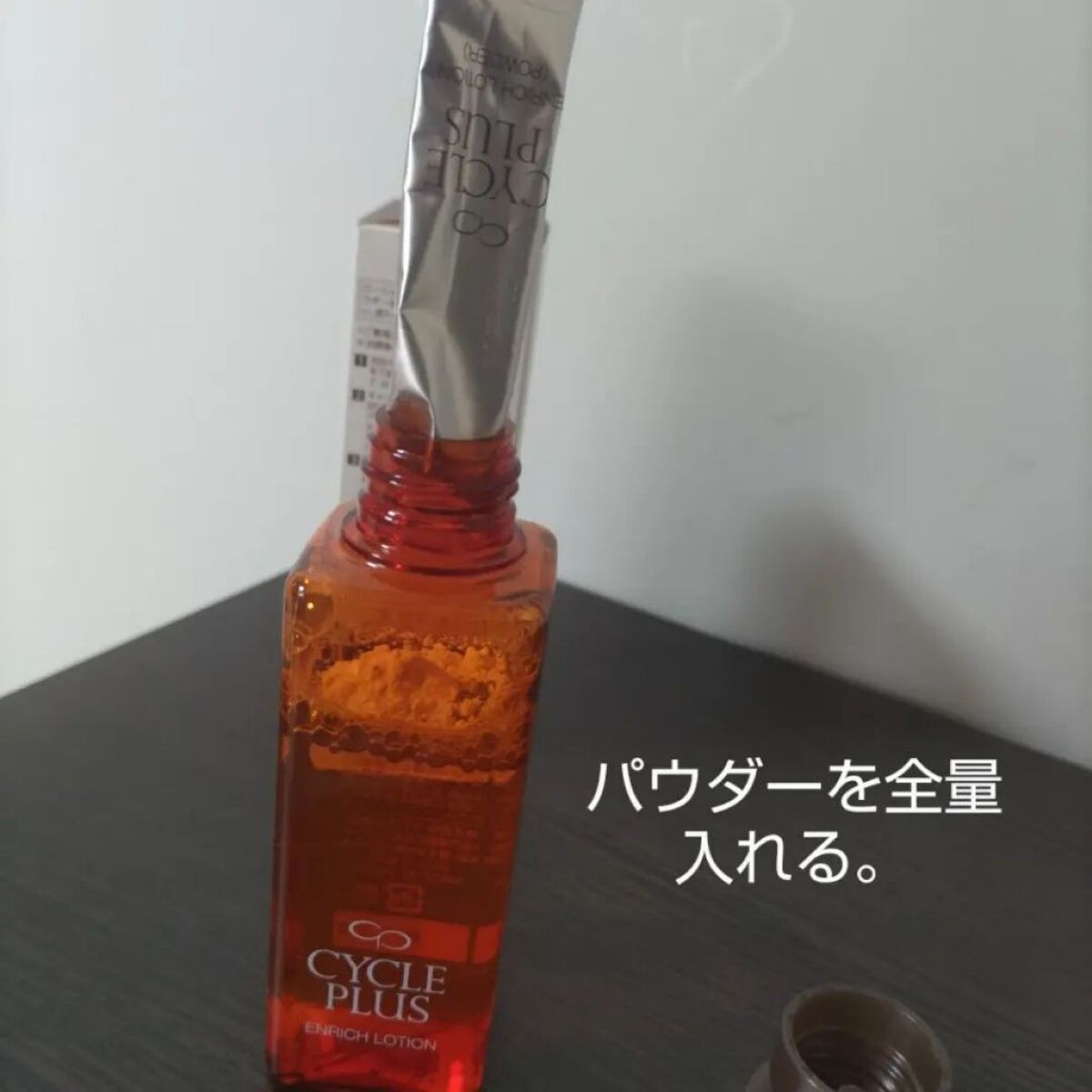 サイクルプラスエンリッチローション付属のパウダーを混ぜて20回ほど振って5分待てば完成!即効性と浸透力を考えた化粧水だから、翌朝から毛穴ケアできてる感じがして嬉しい✨#PR#supportedbynaris#サイクルプラス#ビタミンCスキンケ...
