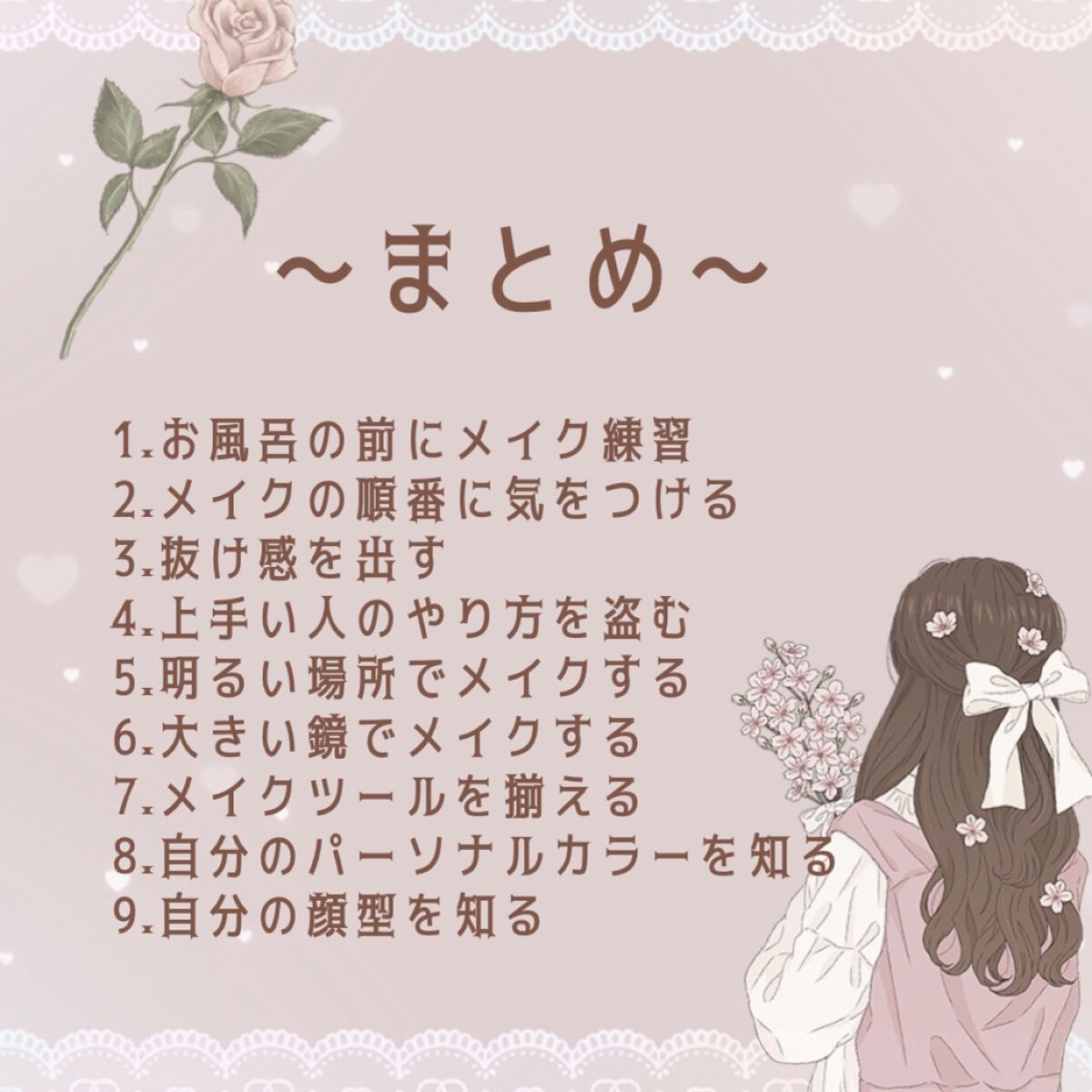 1から9までしっかり頭に入れて練習してメイク上手になりみおんさんのようになりたいです🥰