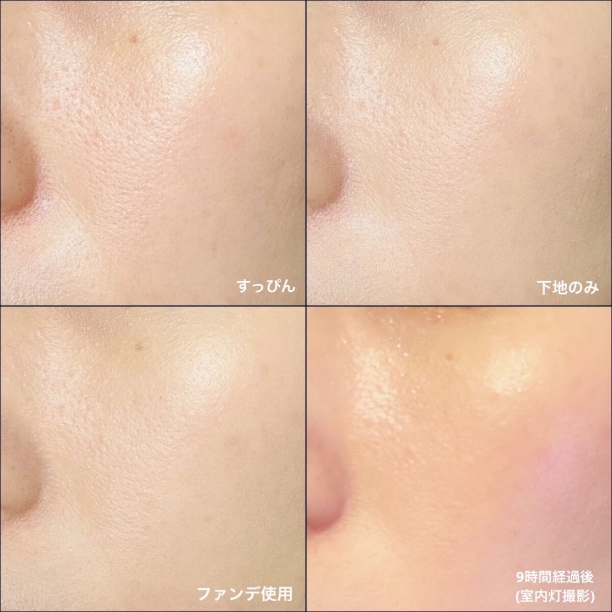 この下地はノビが良く肌にスルスル馴染みます☺︎ 肌が何トーンもアップしてくれます⤴︎ 小鼻周りの赤みもしっかり抑えてくれてコンシーラーを使わずに済みます❤︎ クッションなのでつける量は少しずつがオススメ◎ うすーく叩いて肌にのばすとまるで自分の肌が綺麗になったようにトーンアップし、輝きが出ました𖤐˒˒ のせた箇所がパッと明るくトーンアップ!! 少しテカリは気になりますが全然汚く崩れてません…! クッション=崩れやすいのイメージを覆してくれるベースメイクの組み合わせでした𓂃𓃱𓈒𓏸