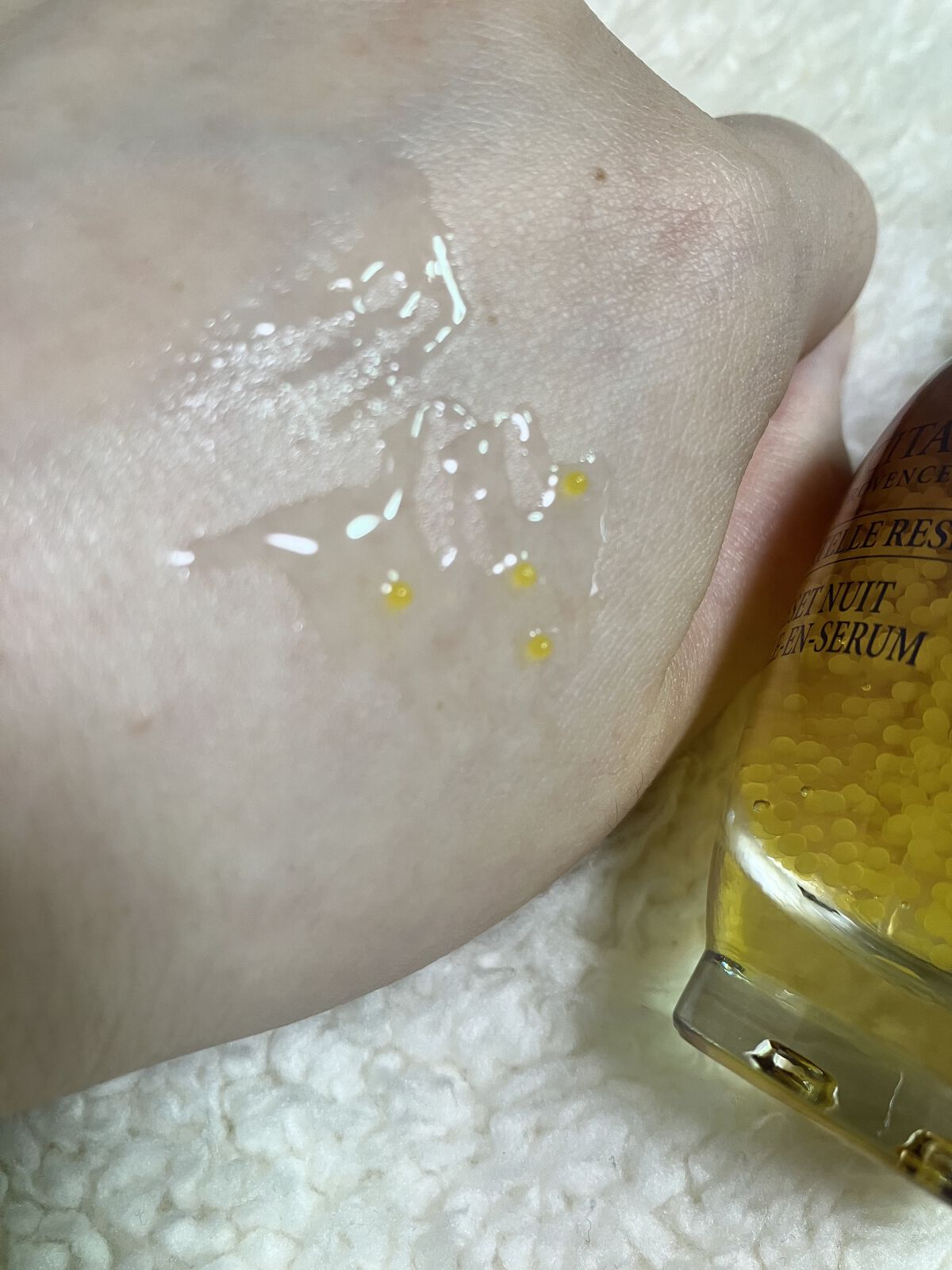 ロクシタンの人気美容液がリニューアル! ボトルの中で輝く黄金のオーガニックのイモーテルエッセンシャルオイルカプセル*使うたびにはじけて新鮮な美容成分を届けてくれるんです。 肌に触れた瞬間、ふわっと広がるイモーテルの香りに贅沢なナイトケアタイムを過ごしているように感じます。 この1本で簡単にプロ級のスキンケアができちゃいます!!