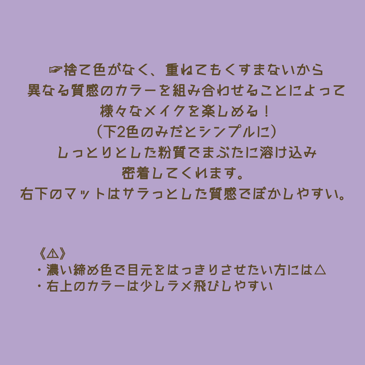 | 3ã€ã®ç°ãªã質æãããªã4è²ãã¬ããã§ãäœ¿ãæ¹ã«ãã£ãŠé°å²æ°ã質æãå€ãã£ãŠãããŸãâš | 詳现ãèŠã |
