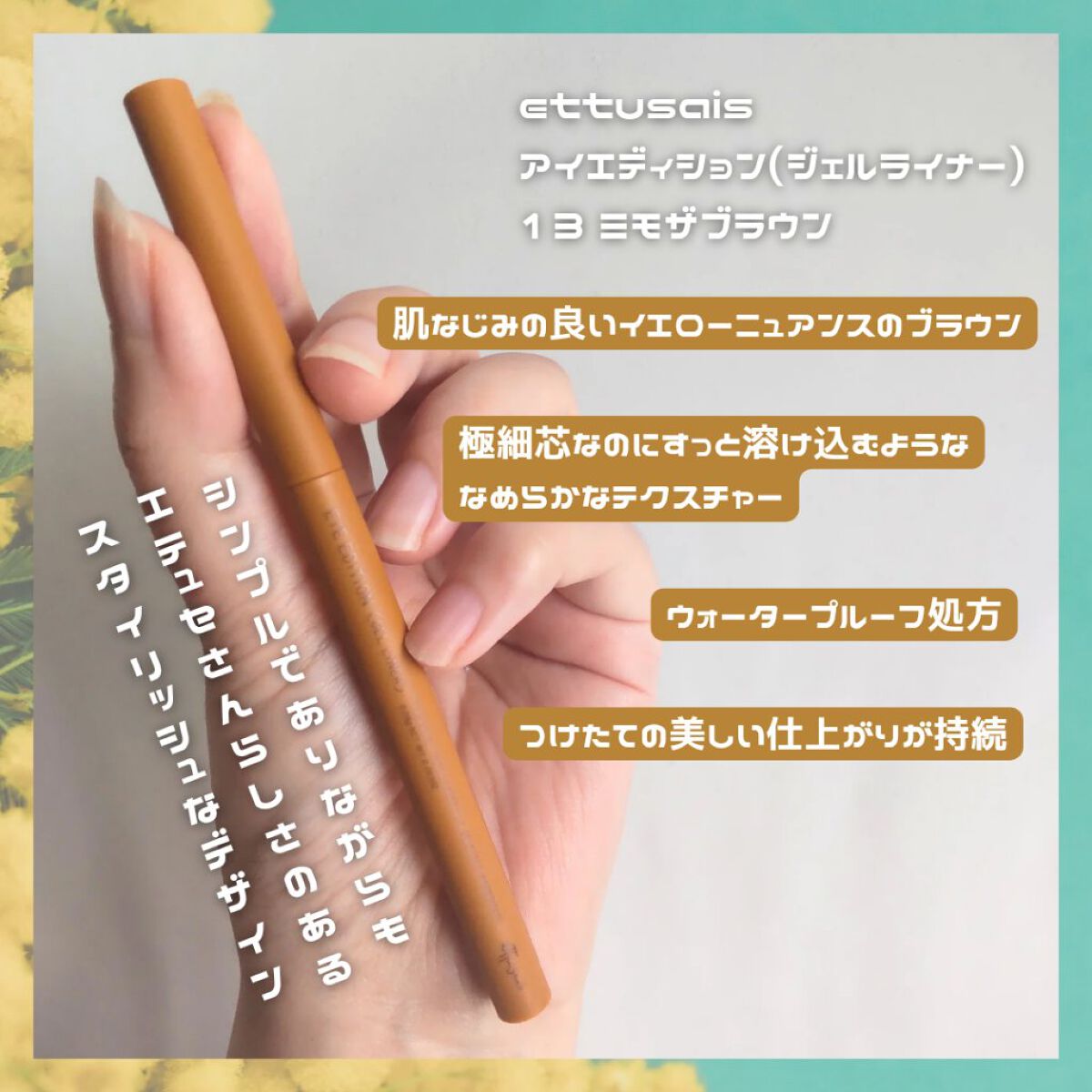 ettusais❤️エテュセアイエディションカラーパレット13ミモザスパークルエテュセラスティングジェルライナーミモザブラウンシルバーベージュ✖️ミモザミモザカラーは落ちついた色味、シルバーはバチバチ系だった。いつものエテュセより攻めてる!好...