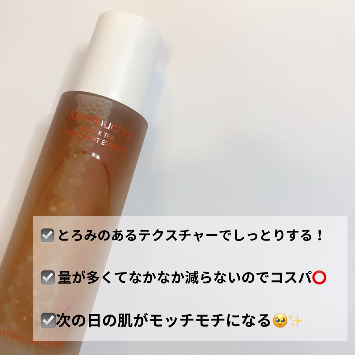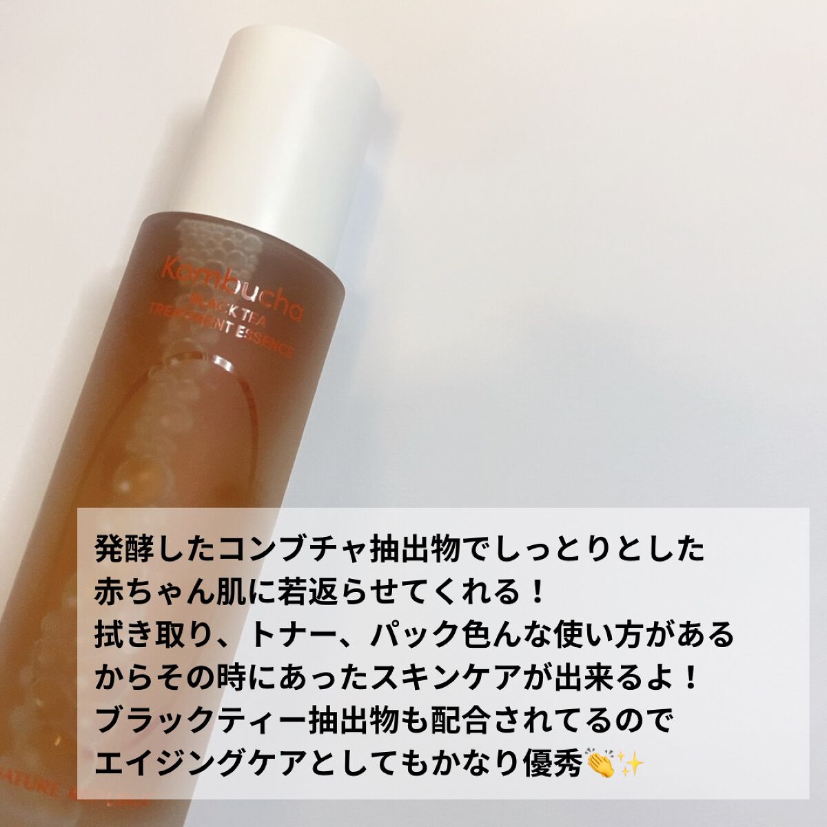 使いきり!ネイチャーリパブリックのKombuchaブラックティー90トリートメントエッセンス(化粧水)。ブラックティーという名前だけあって紅茶みたいな香りで癒されました。コンブチャって発酵飲料で体に良いといわれていてよく飲むこともあるので化粧...