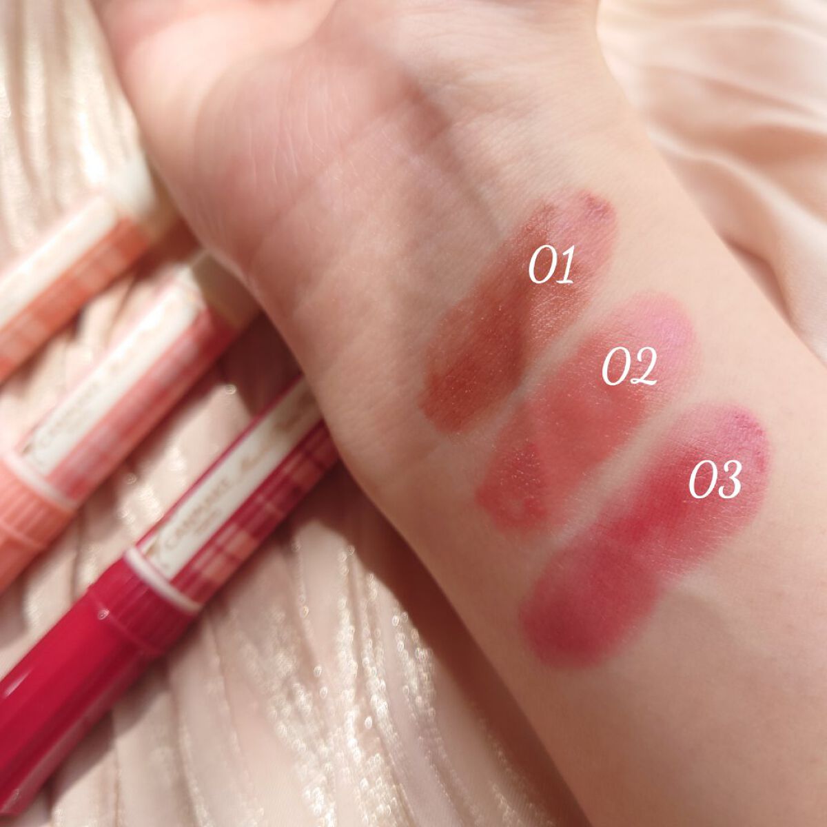以前購入した04 チョコミルクが最高だったので色違いも購入しました。 使い心地はもちろん前に買った物と同じでスースーした清涼感があります。 色味は落ち着いたオレンジベージュのように見えましたが、私の唇に乗せると結構彩度高めで鮮やかな発色になりました。