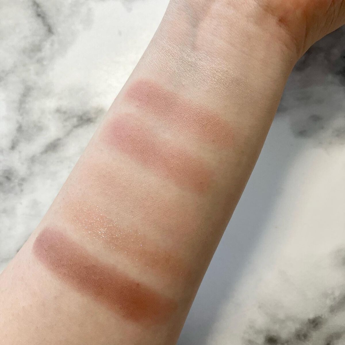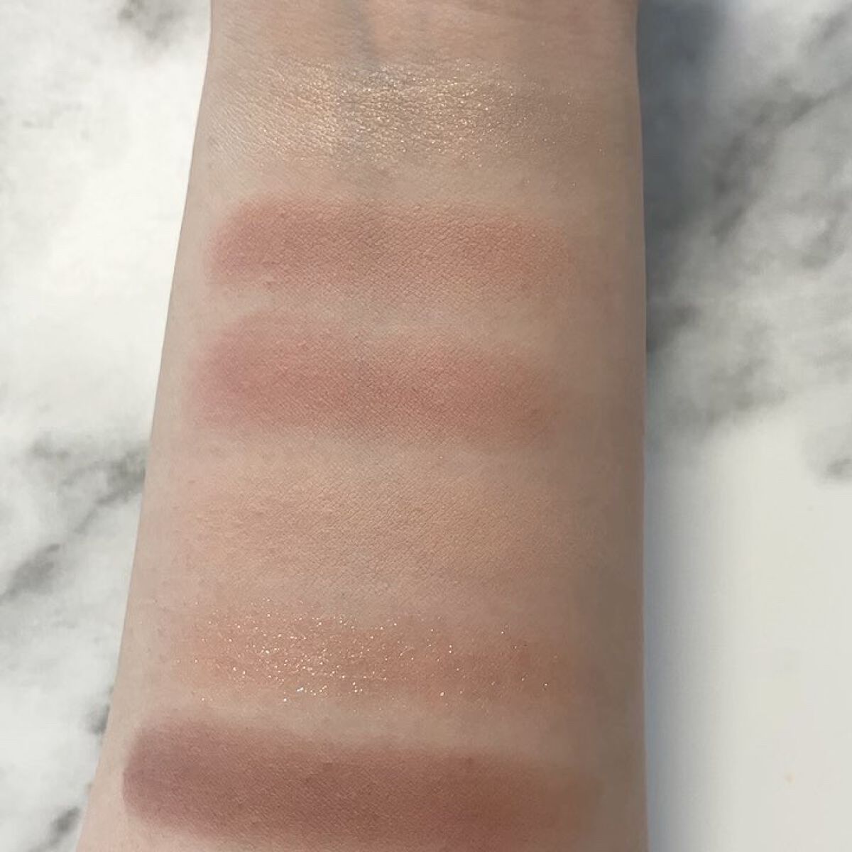 ライトスカペードはピンク、ブルー、イエロー、オレンジなど数種のピグメントを絶妙にブレンドしているそう! 美しいマーブル模様の柔らかな質感のパウダーが肌色に溶け込み、透明感のあるみずみずしい肌に仕上げます。 指にとって塗ってみるとさらさらとした質感で肌馴染みがよく自然なツヤ感があります。 角度によってまた違う輝きがあって美しいハイライトです✨ ナチュラルなメイクでも派手目なメイクでも使いやすい! 目の下の涙袋に使っても馴染みやすく綺麗に仕上がります。 ラメ感のあるギラギラというよりはパールっぽいツヤ感✨